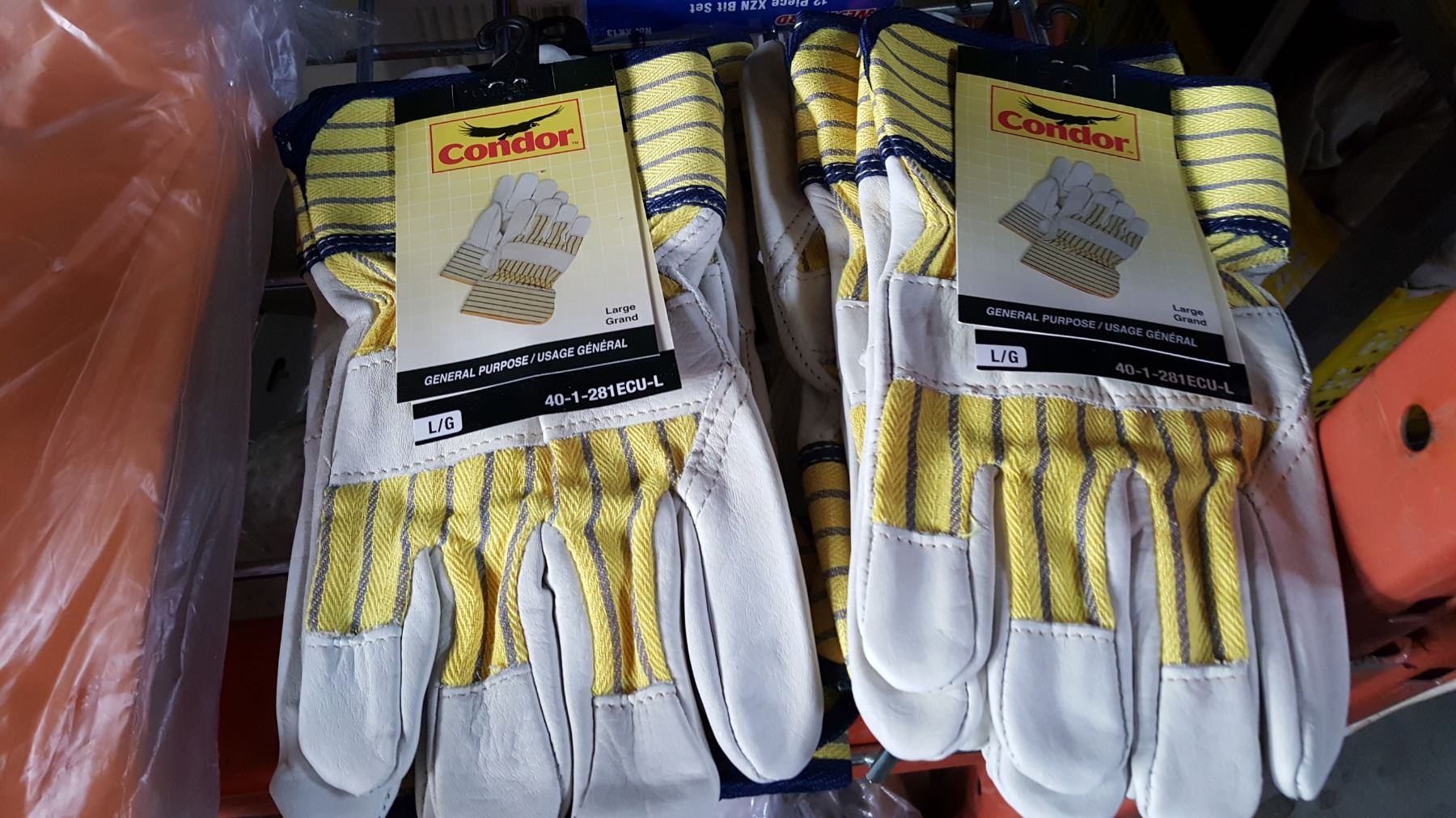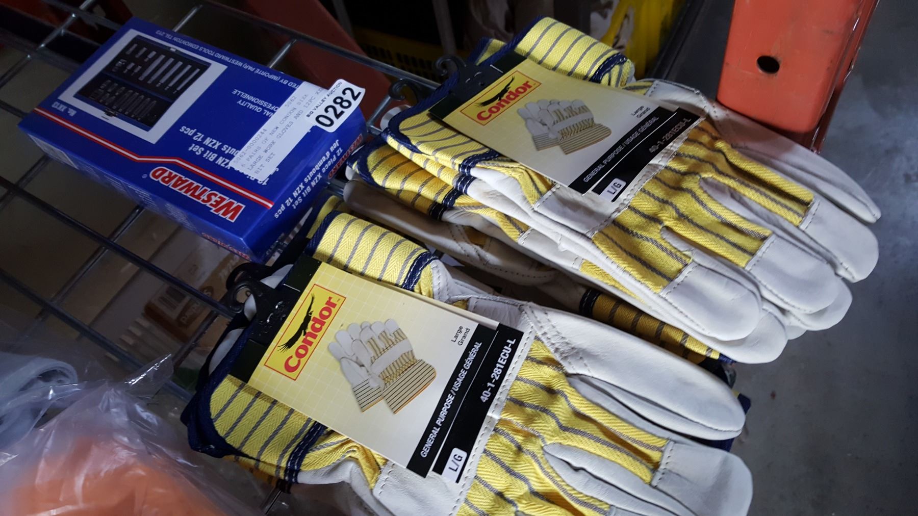 6 PAIRS OF NEW CONDOR SIZE LARGE WORK GLOVES AND 12PC XZN BIT SET