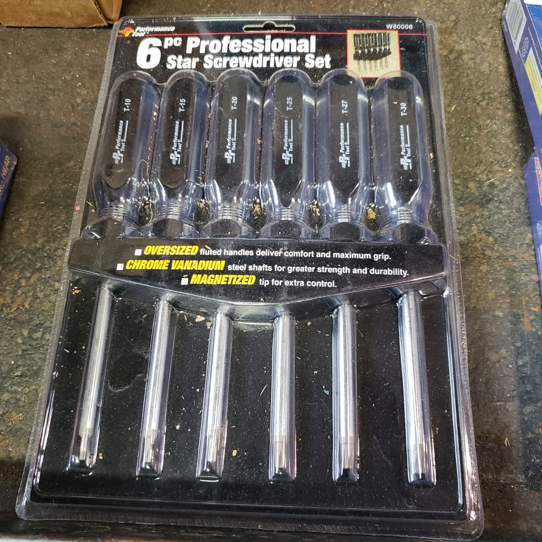 6 PIECE PROFESSIONAL STAR SCREW DRIVER SET AND 3 10 PIECE 3/8" DRIVE HEX SCREWS