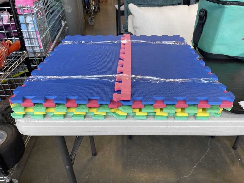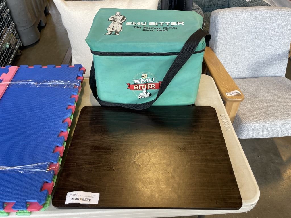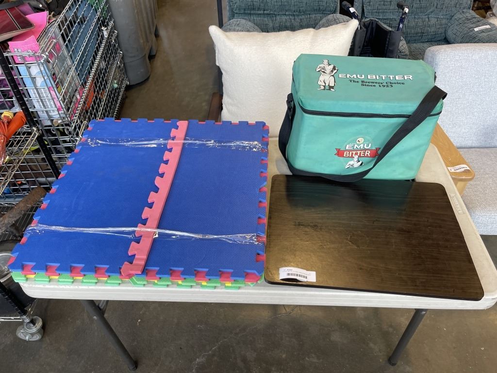 6 PLAY MATTS, TV TRAY, AND COOLER BAG