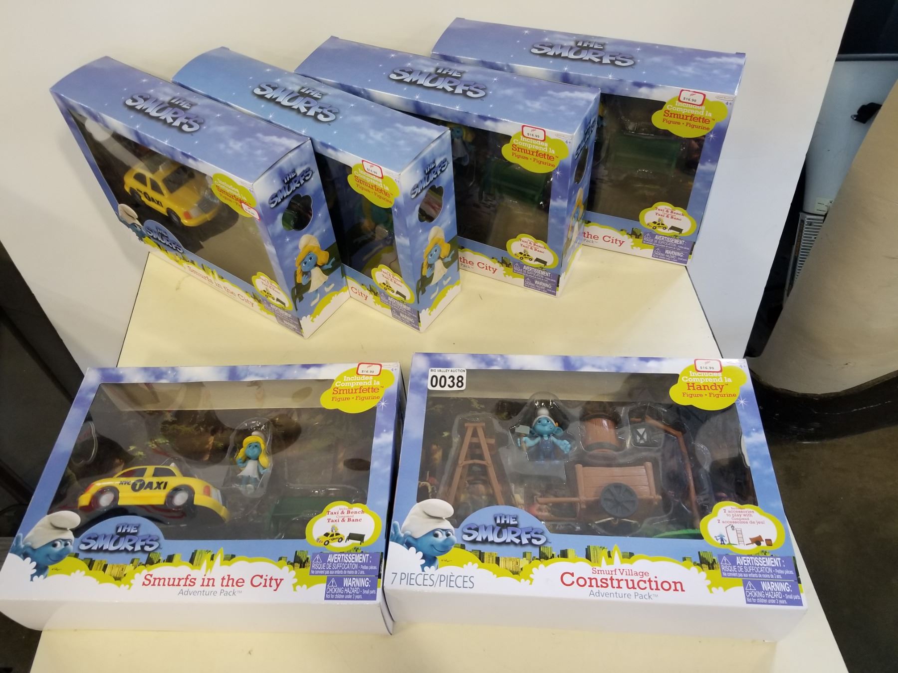 6 SMURFS PLAYSETS 5 SMURFS IN THE CITY AND ONE SMURFS VILLAGE CONSTRUCTION ADVENTURE PACK