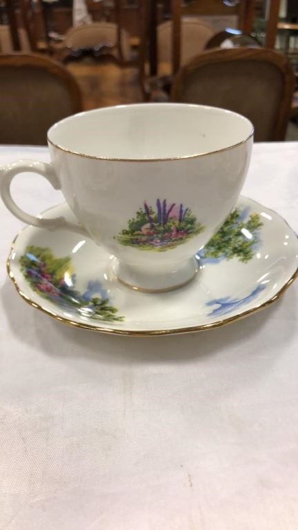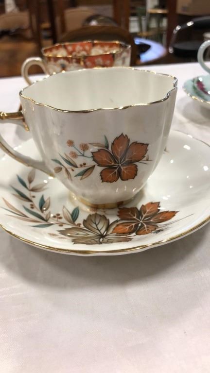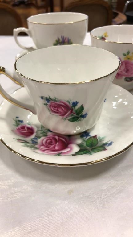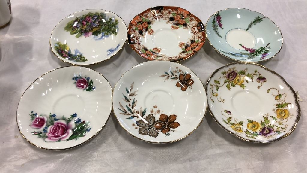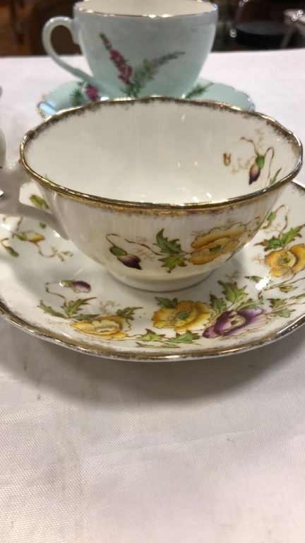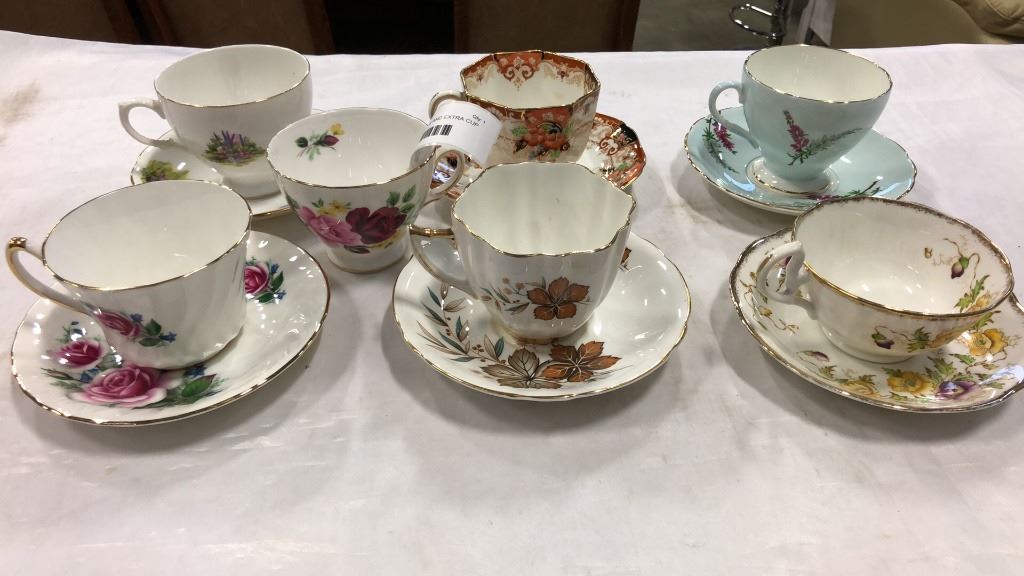 6 TEACUPS AND SAUCERS AND EXTRA CUP - ROYAL ALBERT, WINDOR, FOLLEY, ETC