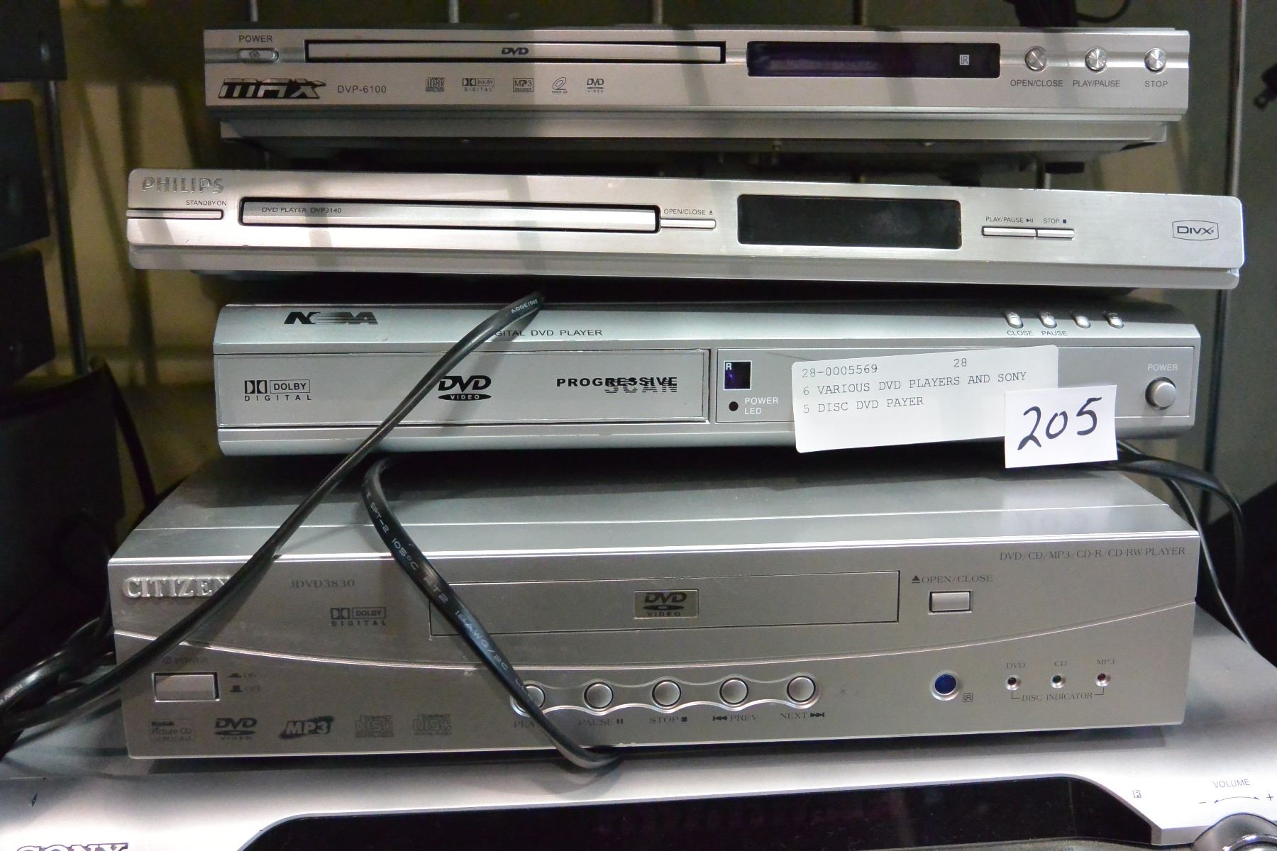 6 VARIOUS DVD PLAYERS AND SONY 5 DISC DVD PAYER