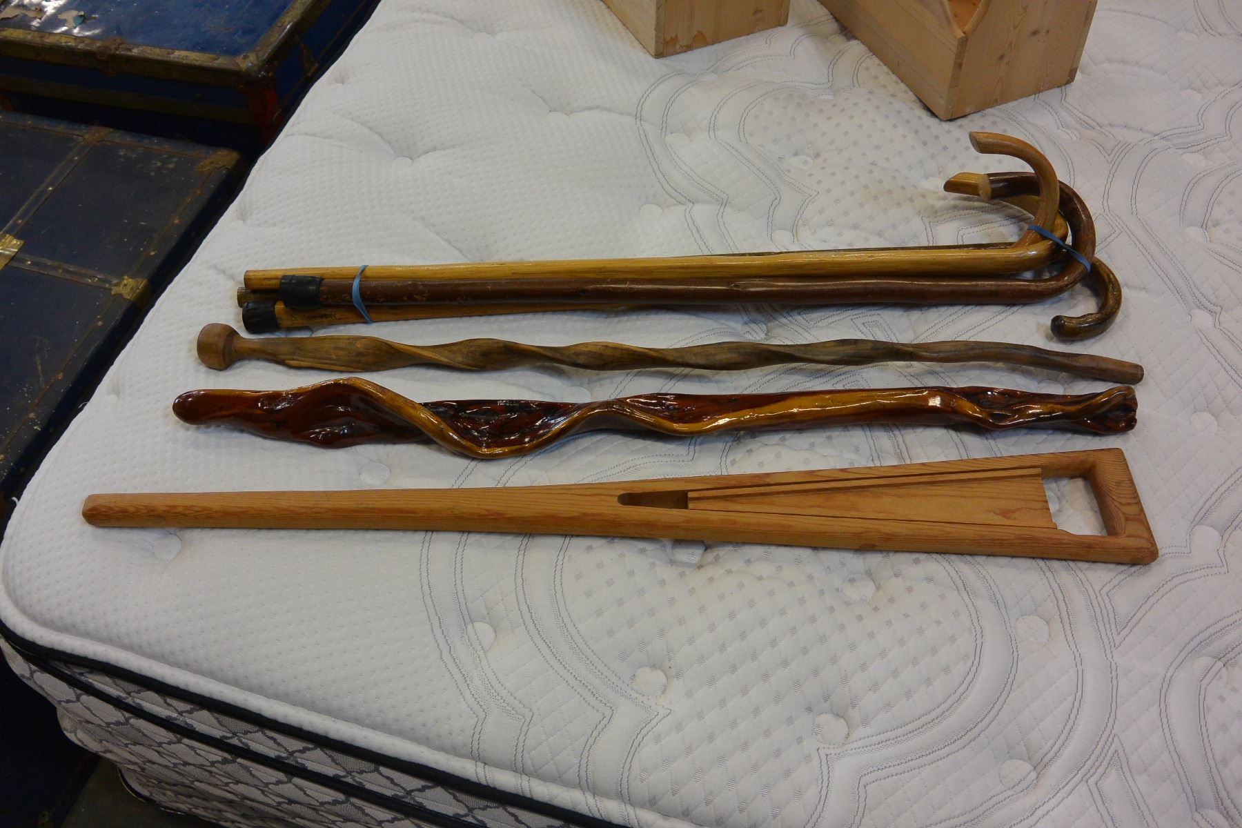 6 WALKING CANES AND VINTAGE PEE DIRECTOR