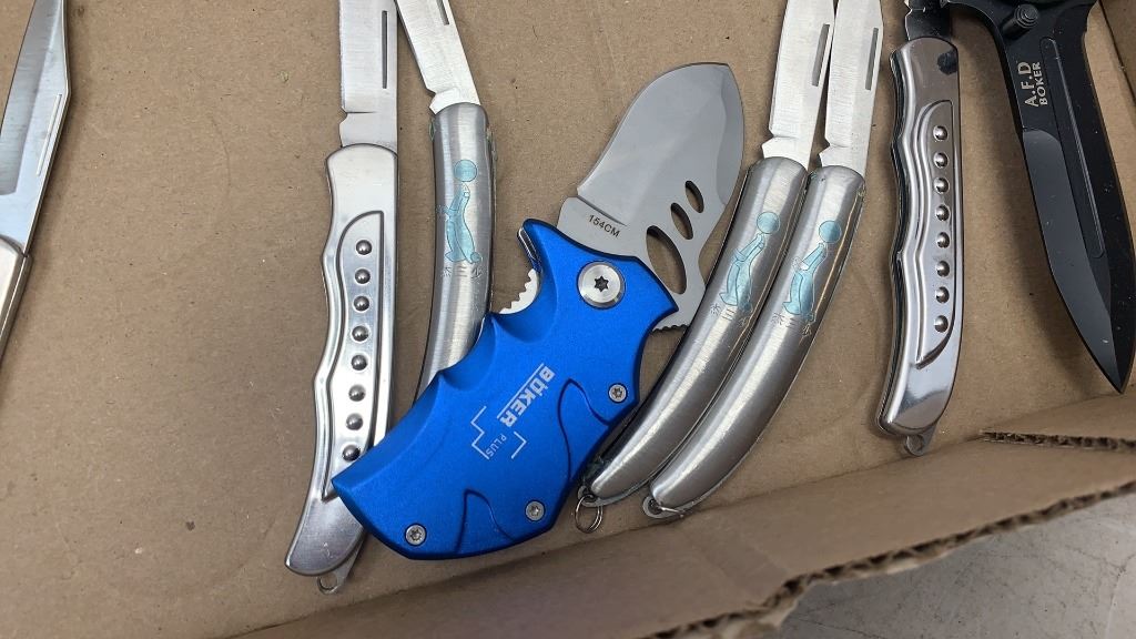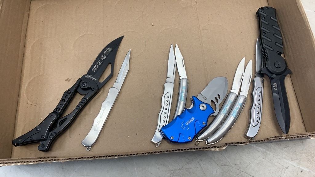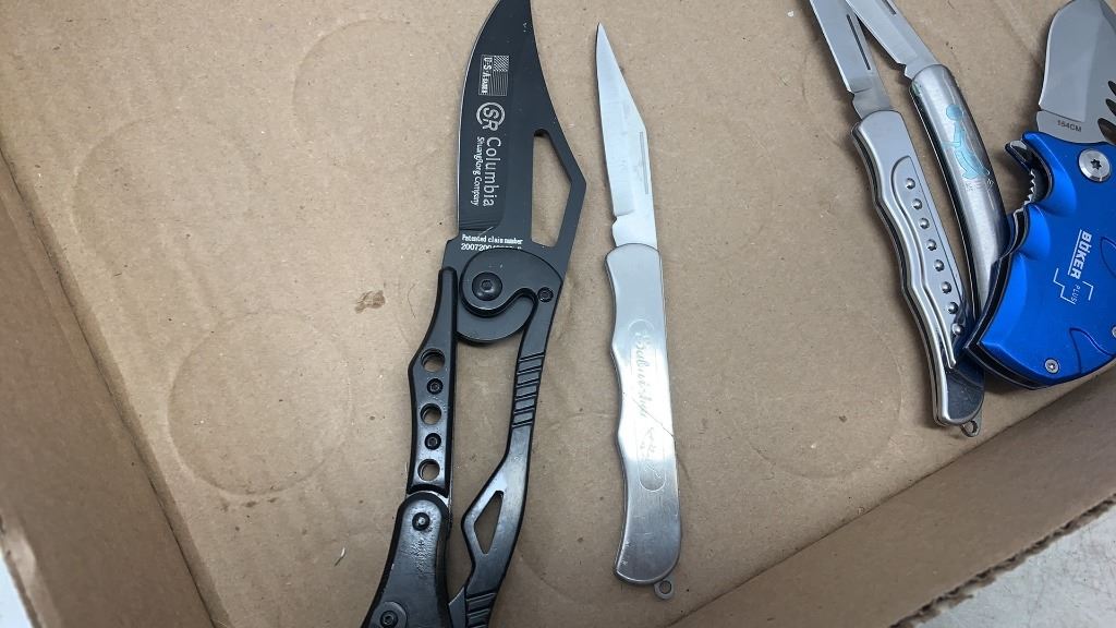 6 new pocket knives with new Columbia, buker and AFD folding knives