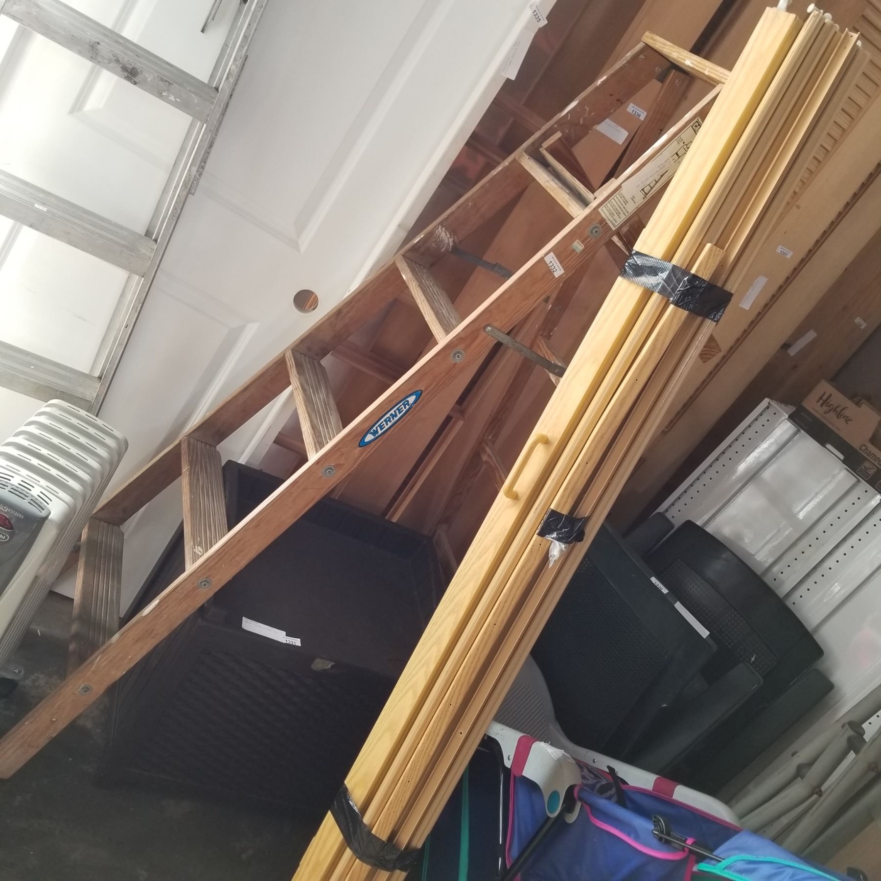 6FT FRAME WOODEN LADDER AND SLIDING WOODEN PANEL DOOR