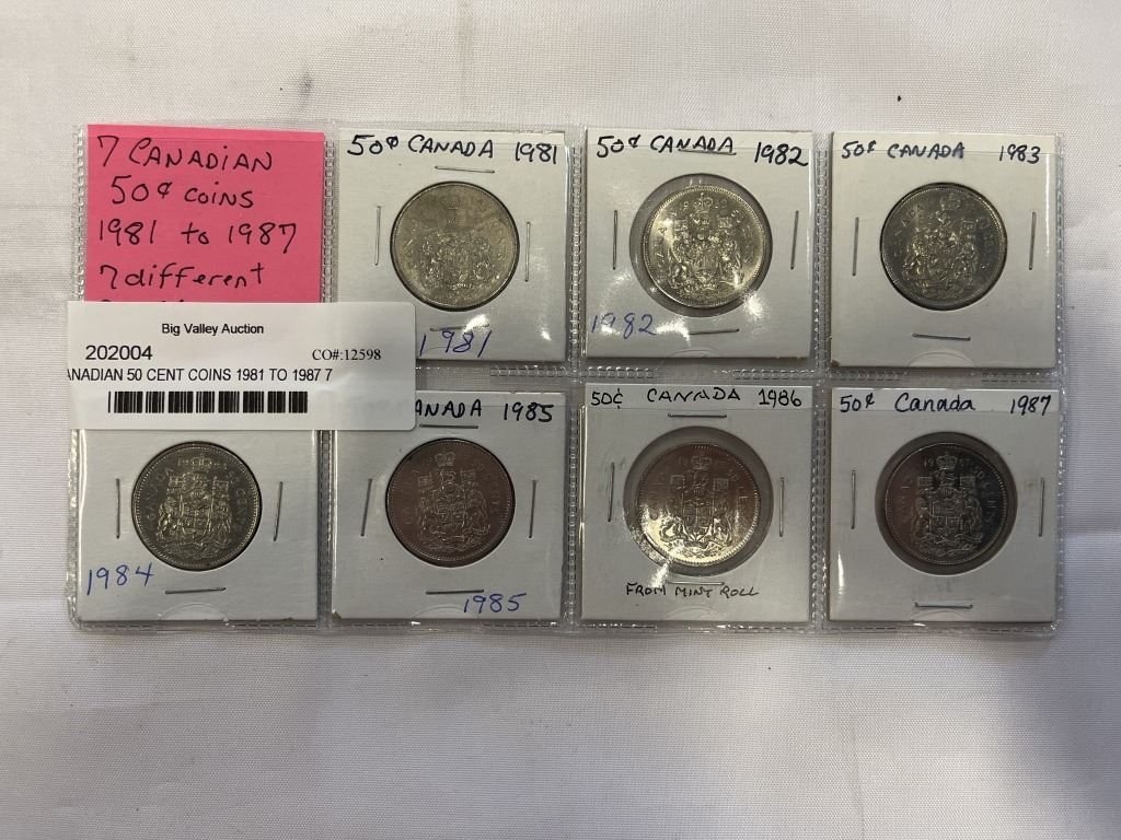 7 CANADIAN 50 CENT COINS 1981 TO 1987 7 DIFFERENT DATES