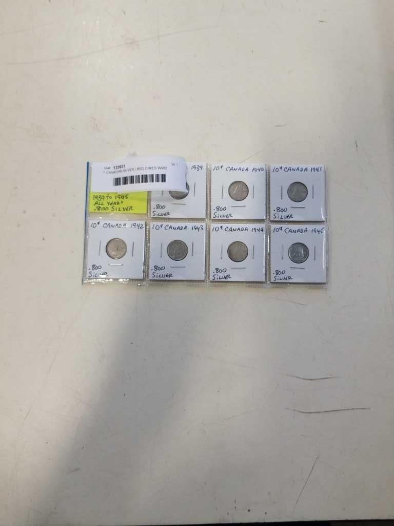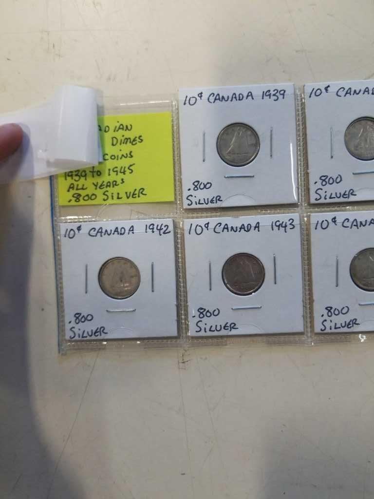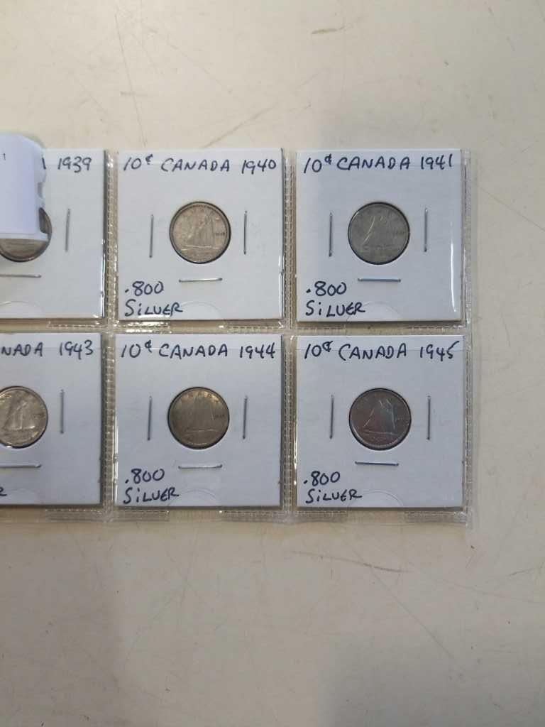 7 CANADIAN SILVER (.800) DIMES WW2 COINS 1939-45 ALL YEARS
