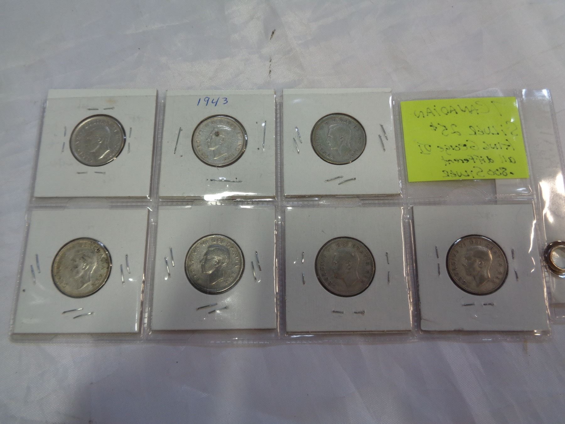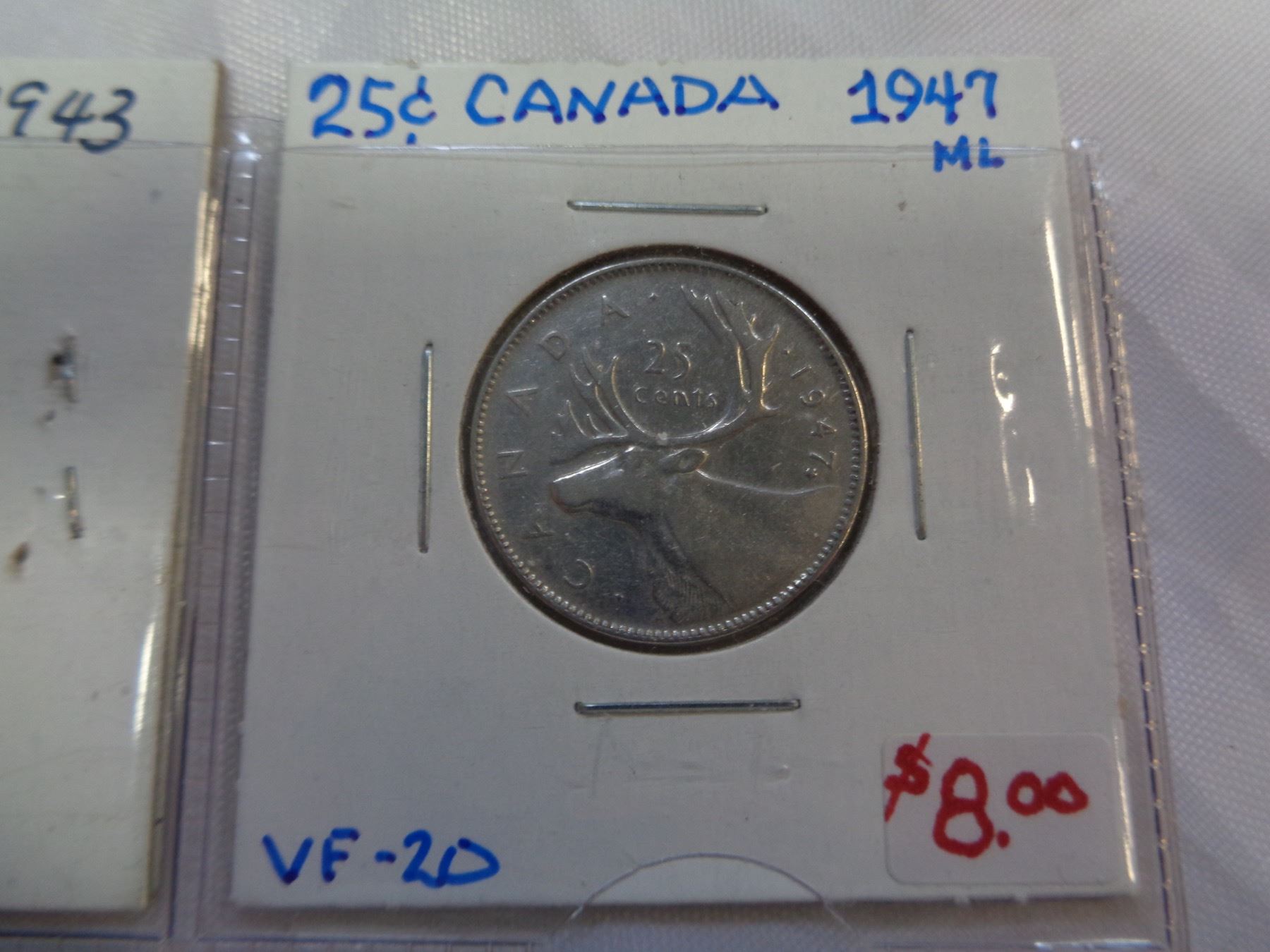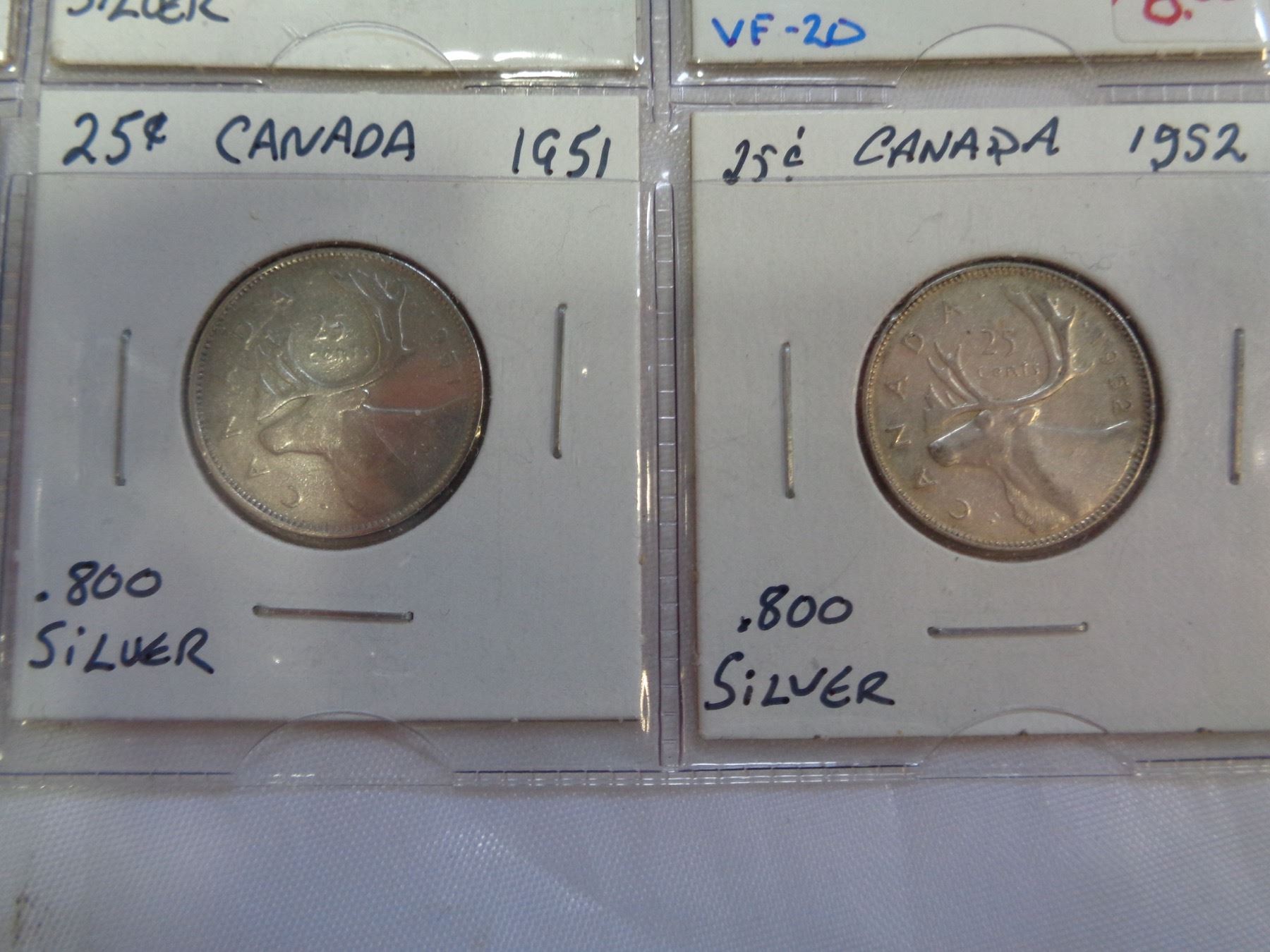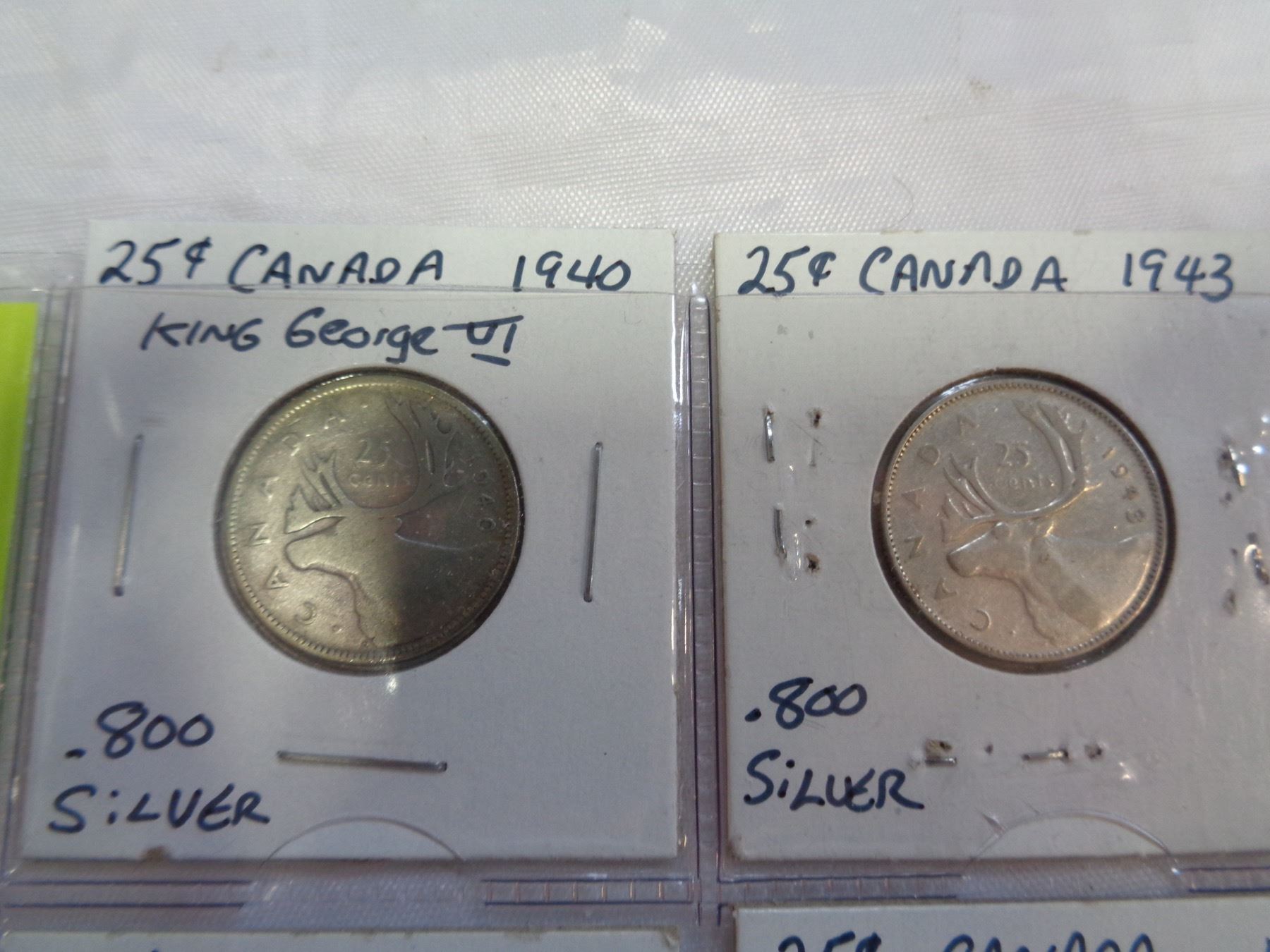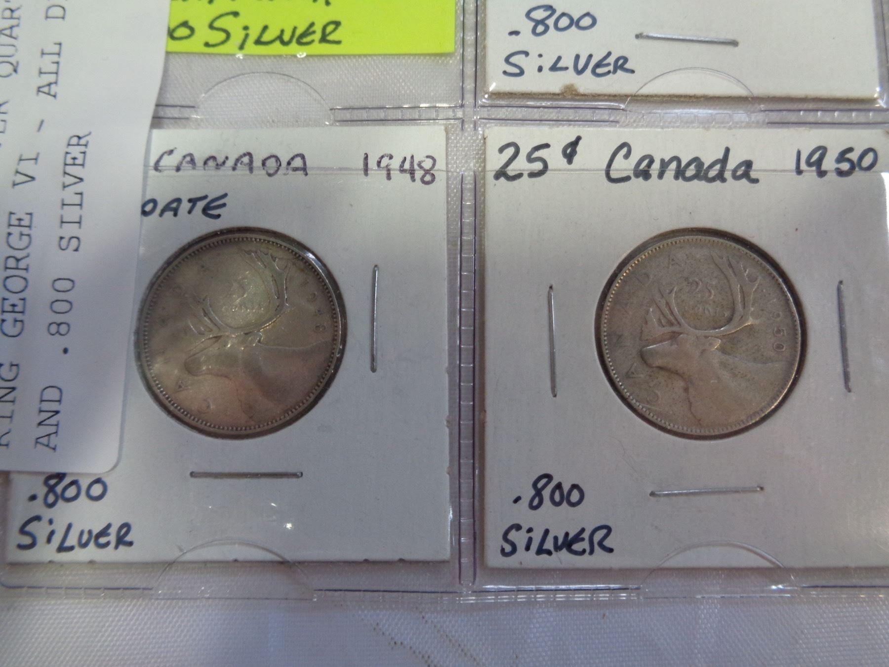 7 CANADIAN SILVER QUARTERS KING GEORGE VI - ALL DIFFERENT AND .800 SILVER