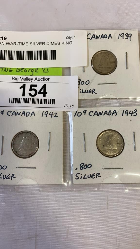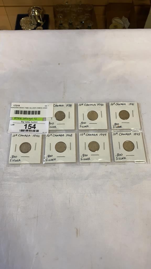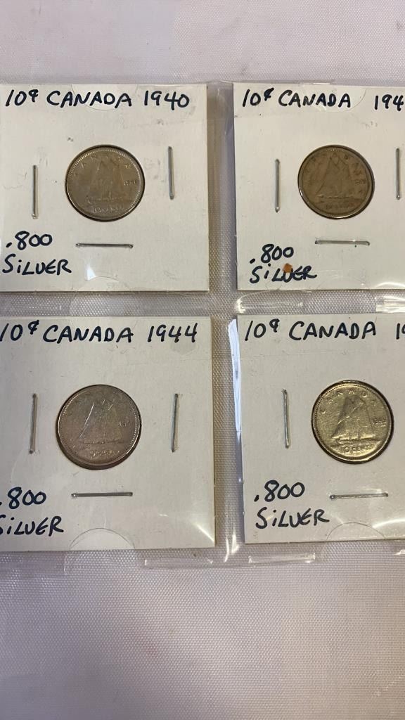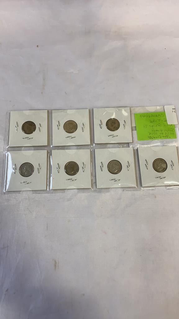 7 CANADIAN WAR-TIME SILVER DIMES KING GEORGE VI 1939-45 .800 SILVER