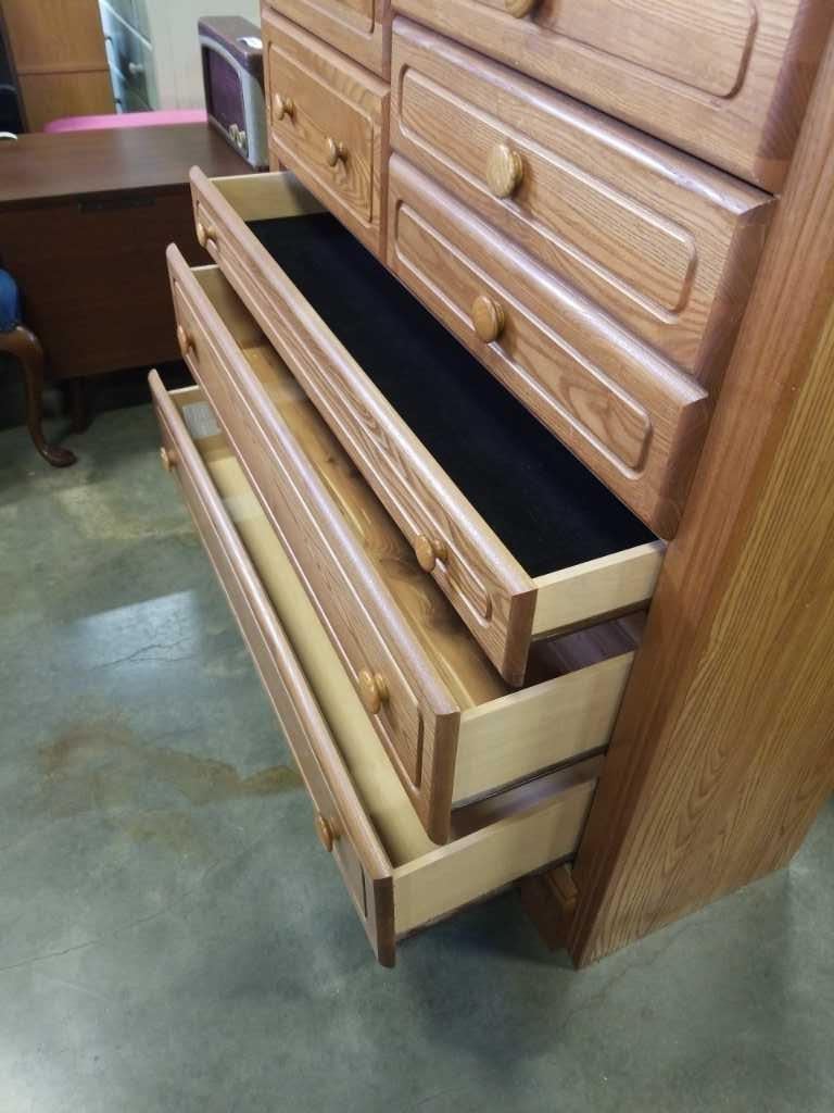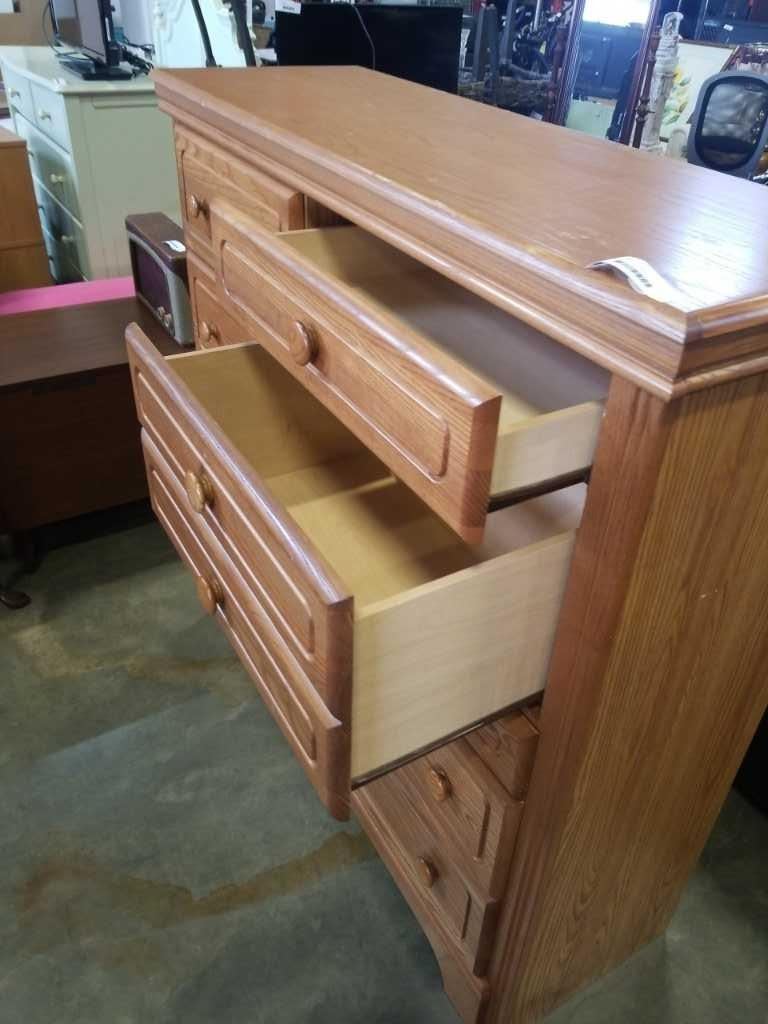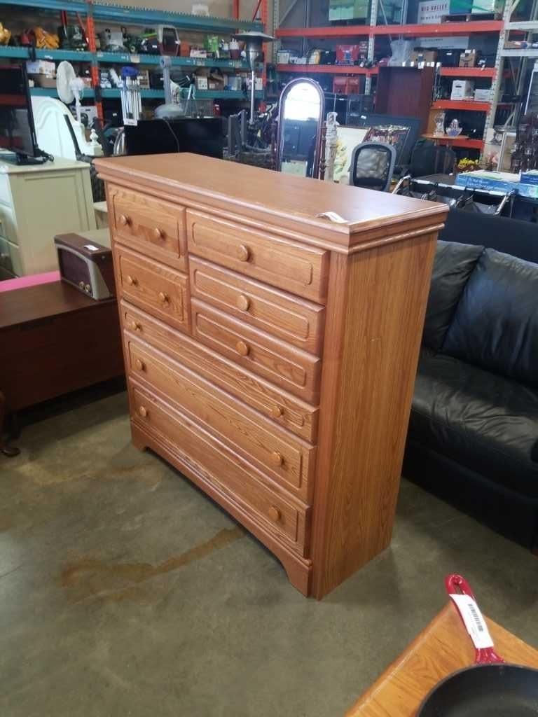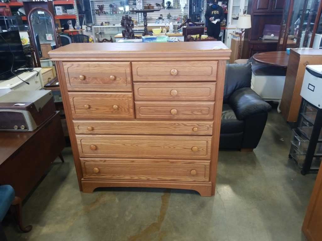7 DRAWER OAK DRESSER - 51 INCHES WIDE X 17 DEEP X 50.5 TALL