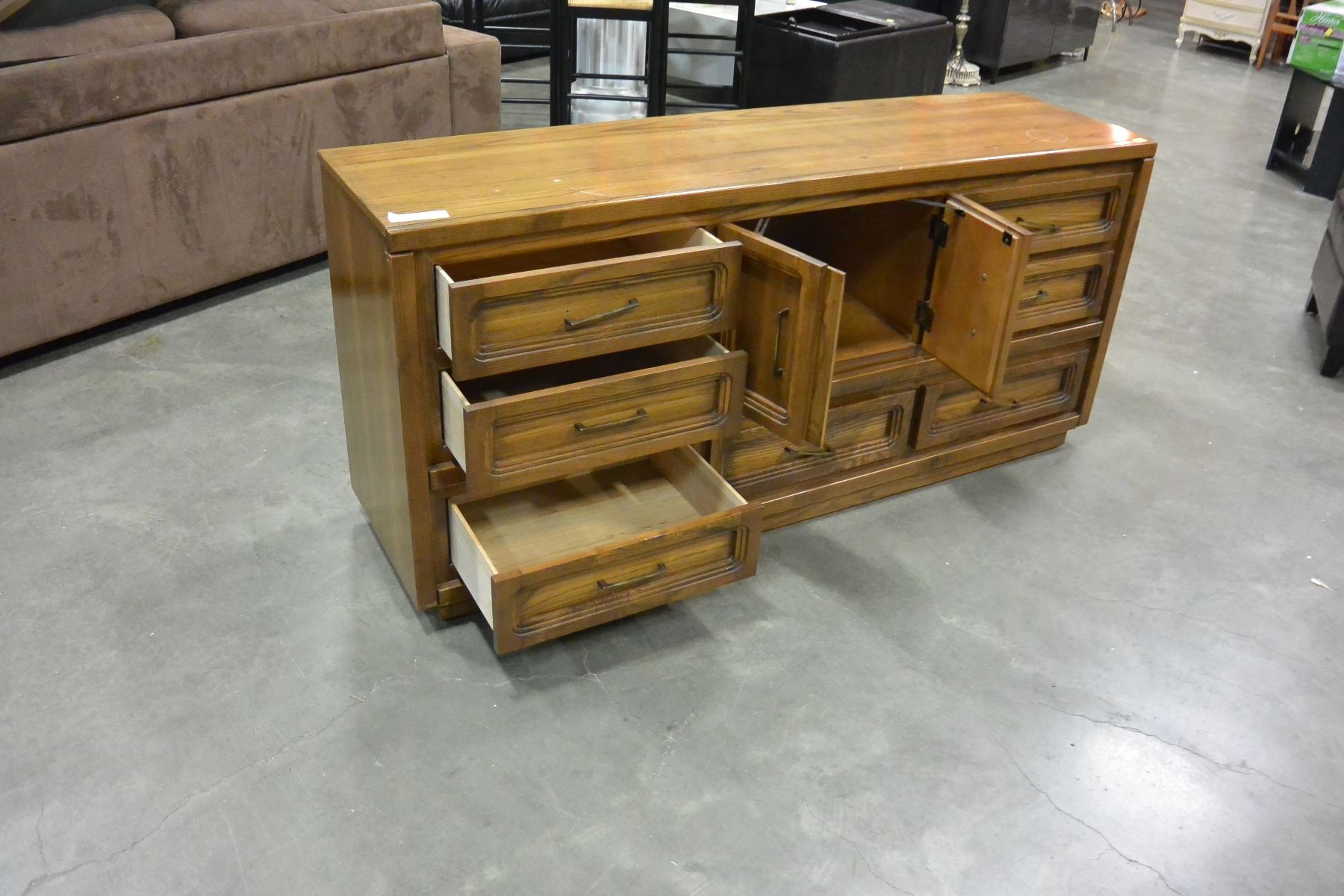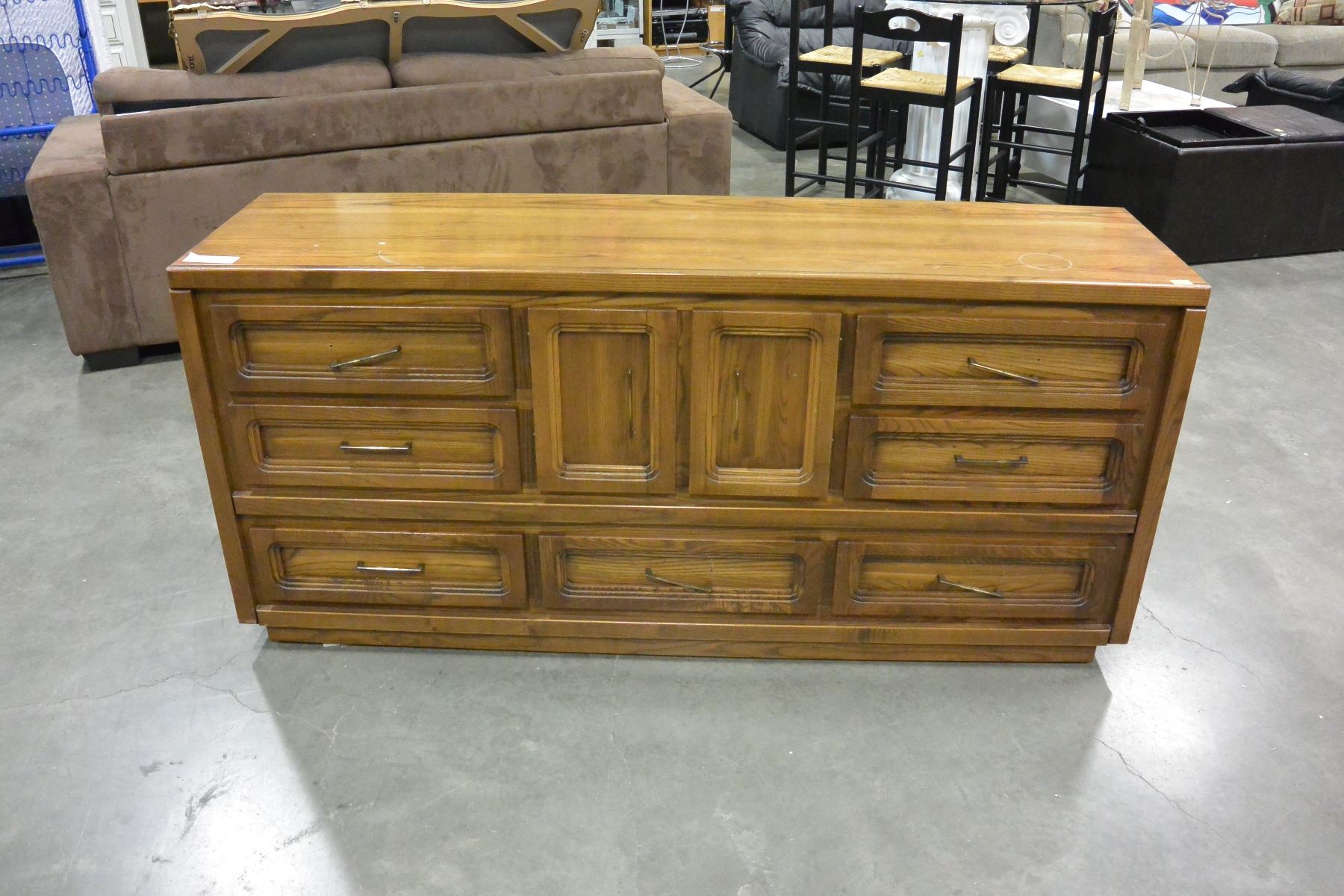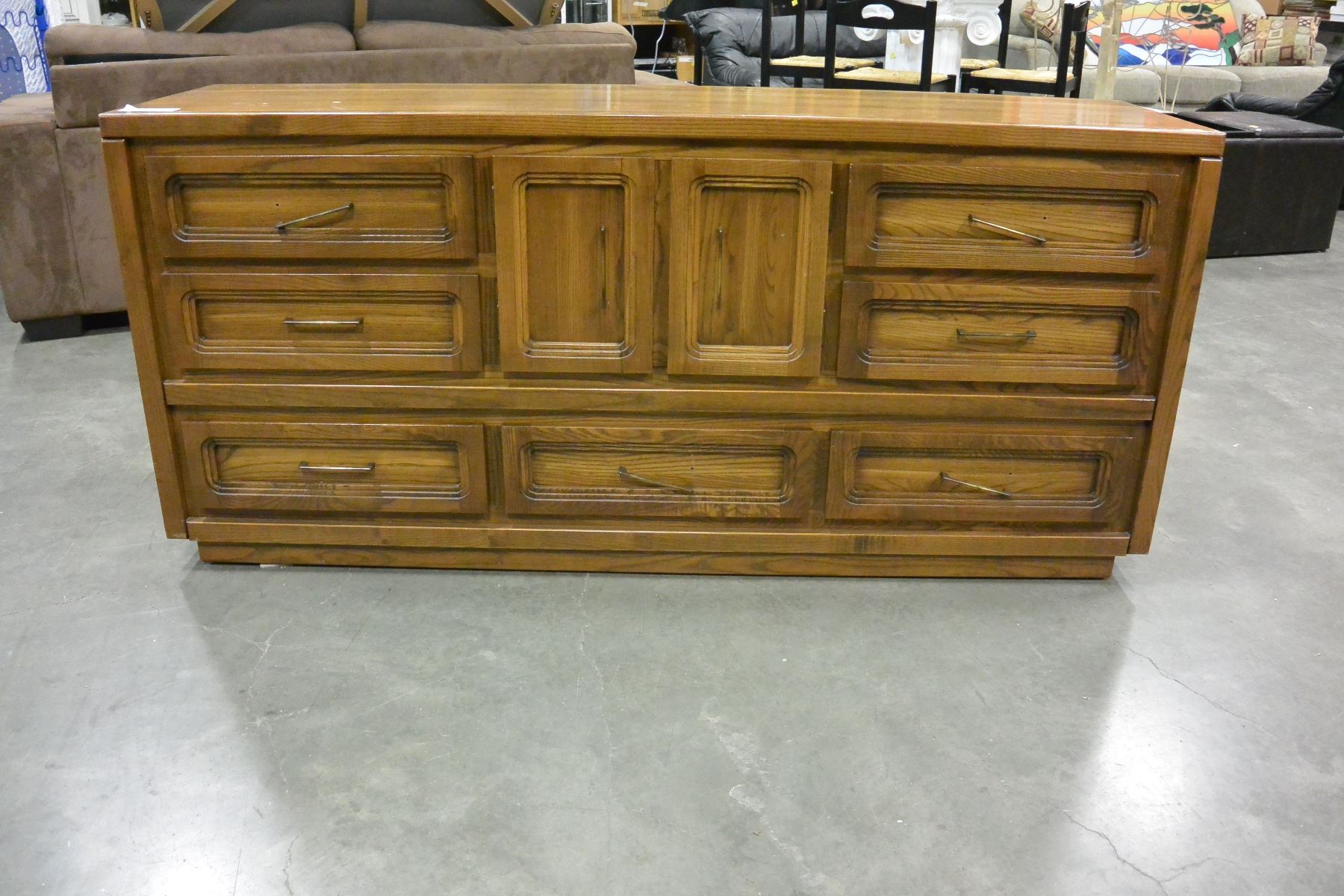7 DRAWER OAK DRESSER AND 2 DRAWER NIGHTSTAND