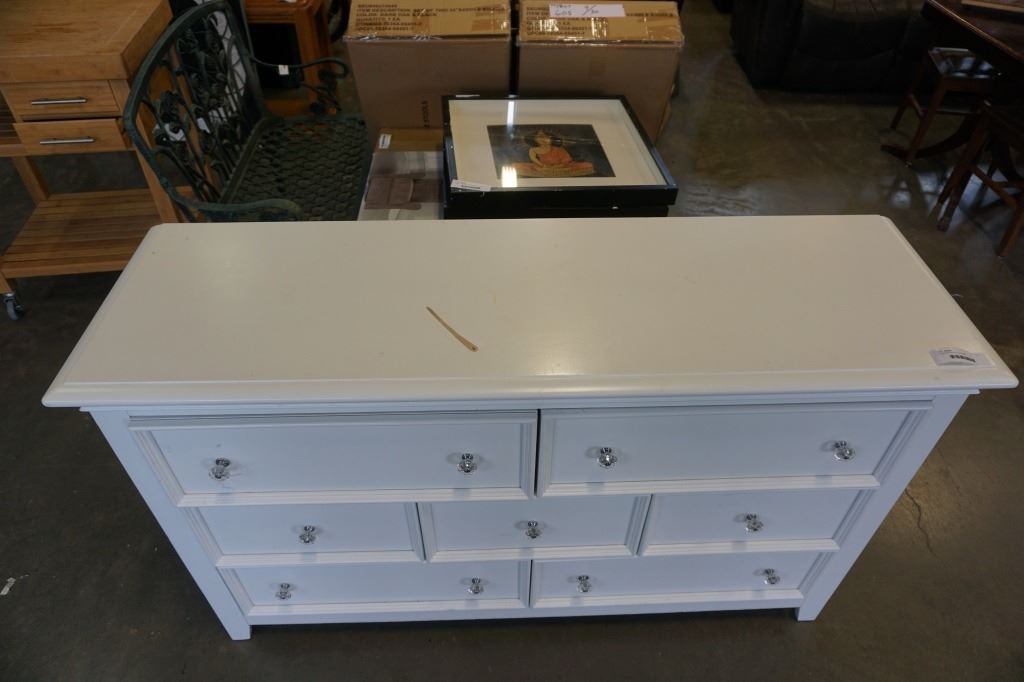 7 DRAWER WHITE DRESSER - 58 INCHES WIDE X 18 DEEP X 35 1/2 TALL