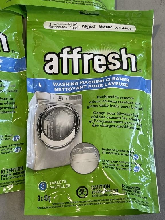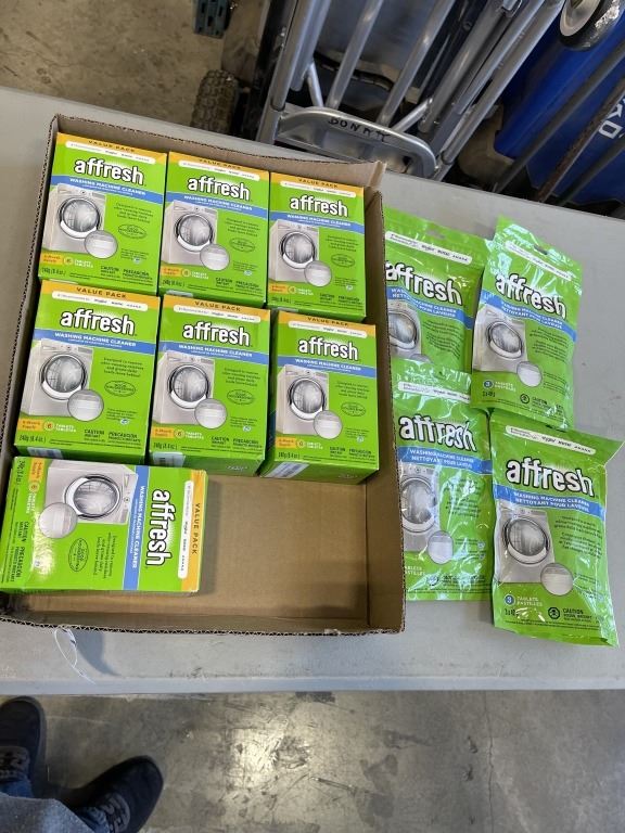 7 NEW BOXES AND 4 BAGS OF AFFRESH WASHING MACHINE CLEANER