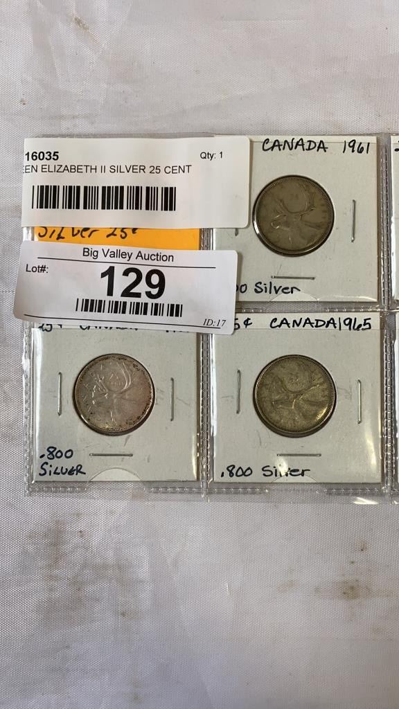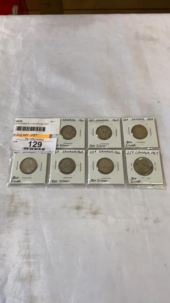 7 QUEEN ELIZABETH II SILVER 25 CENT 1961-1967 .800 SILVER