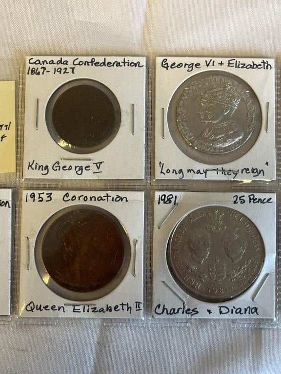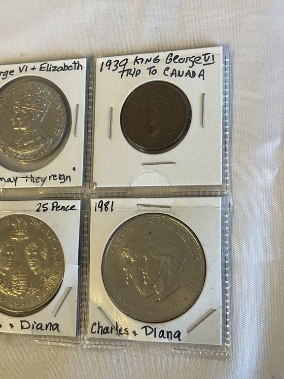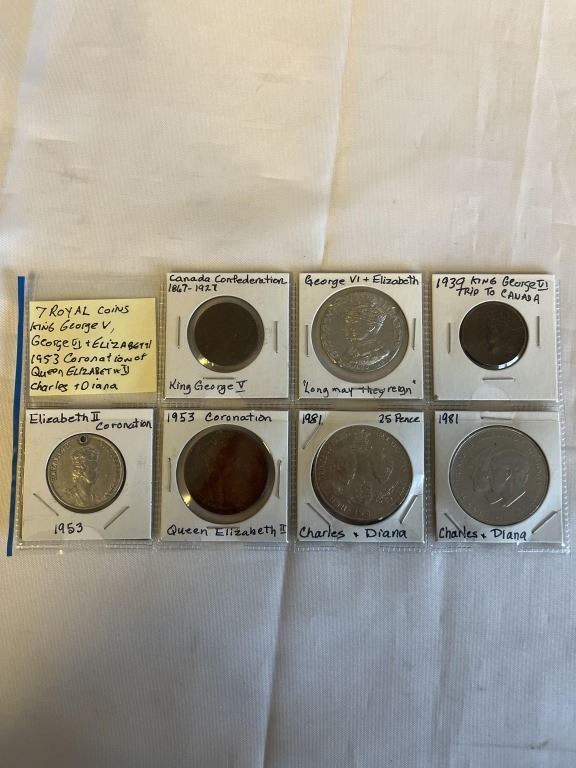 7 SPECIAL ROYAL COINS, KING GEORGE V, KING GEORGE VI, ELIZABETH 1953 CORONATION OF QUEEN ELIZABETH II AND CHARLES AND DIANA