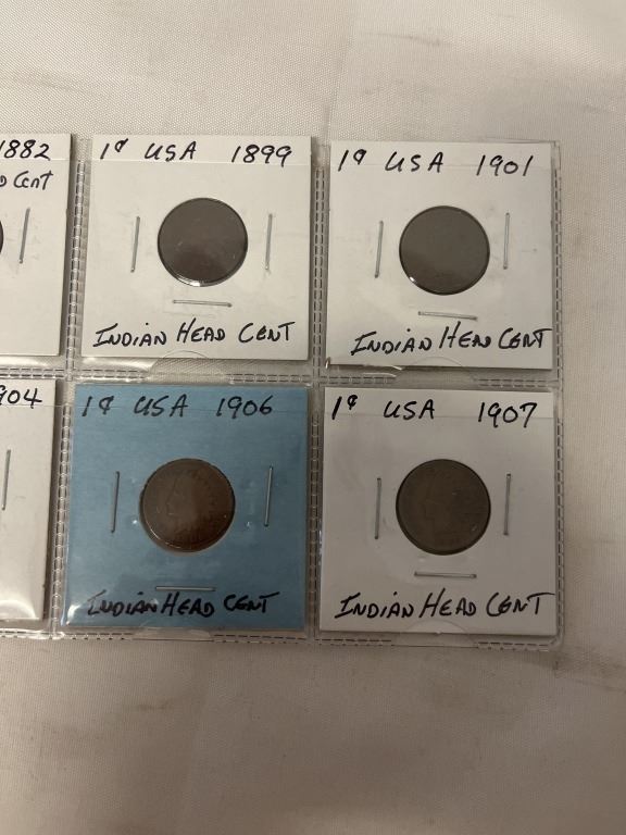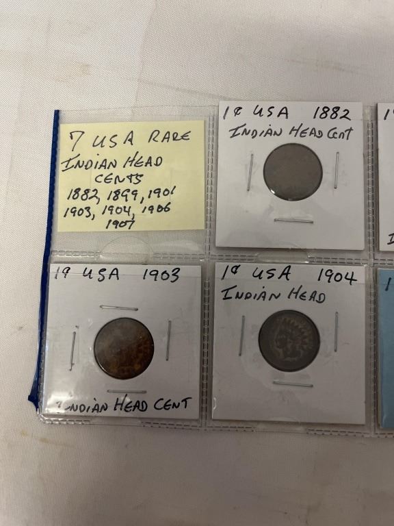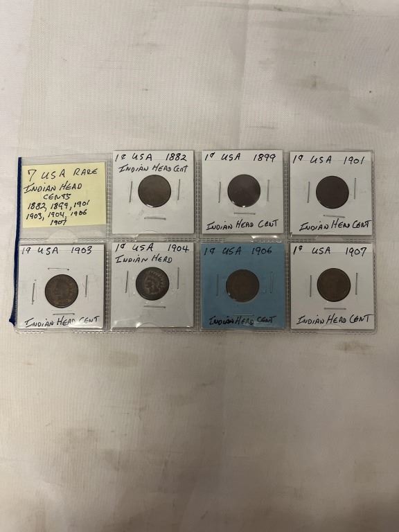 7 USA RARE "INDIAN HEAD" CENTS 1882, 1899, 1901, 1903, 1904, 1906, 1907