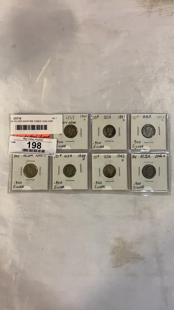 7 USA SILVER WARTIME DIMES 1940-1946 LIBERTY/ROOSEVELT .900 SILVER