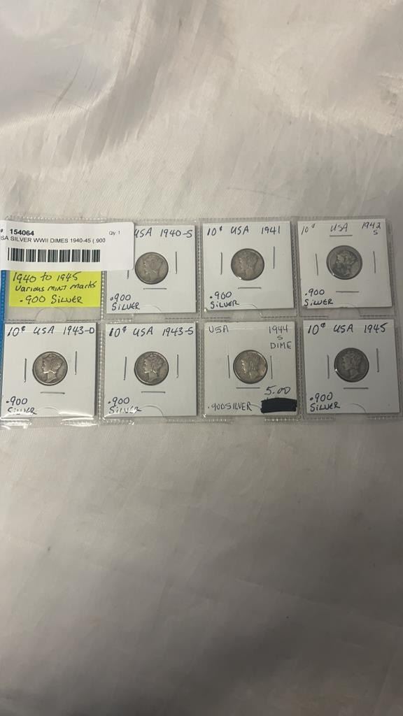 7 USA SILVER WWII DIMES 1940-45 (.900 SILVER)