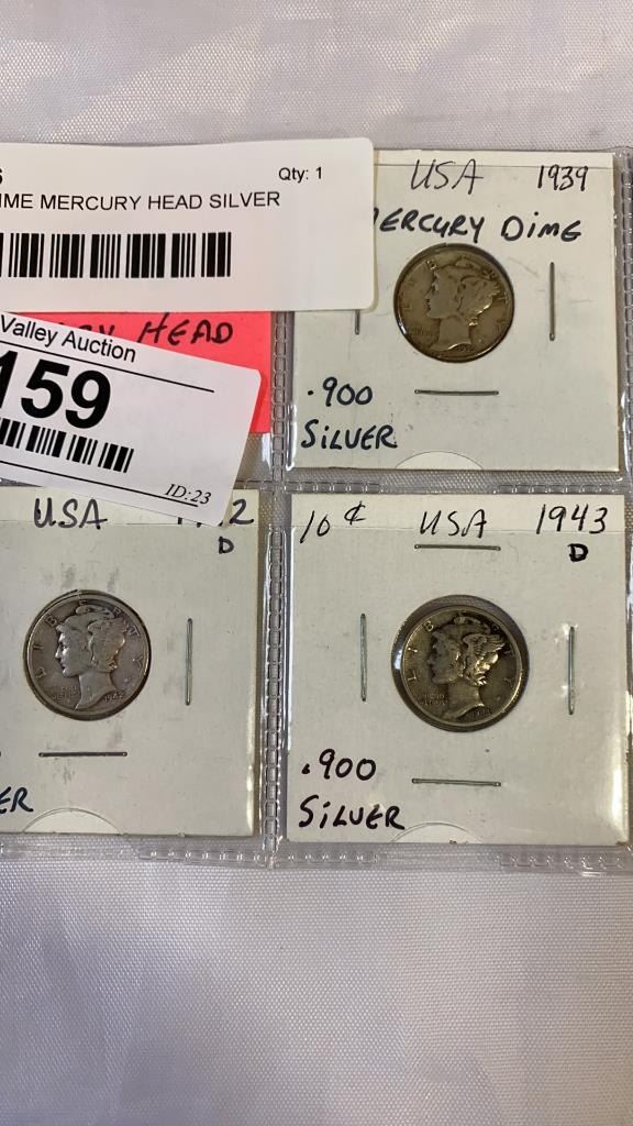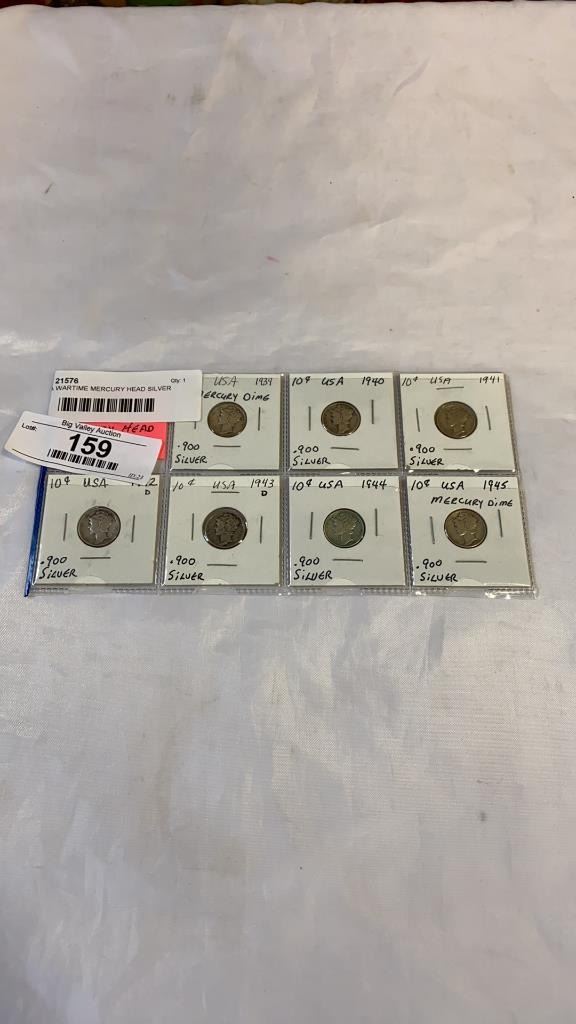 7 USA WARTIME MERCURY HEAD SILVER DIMES .900 SILVER