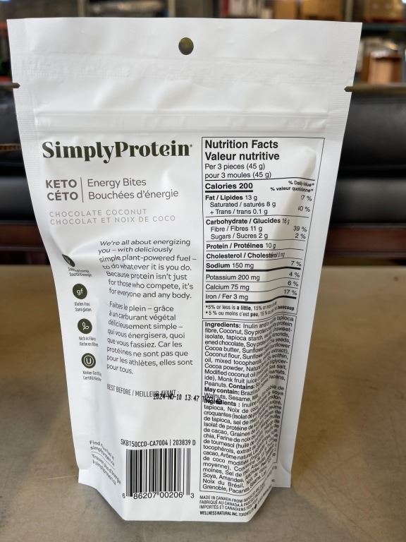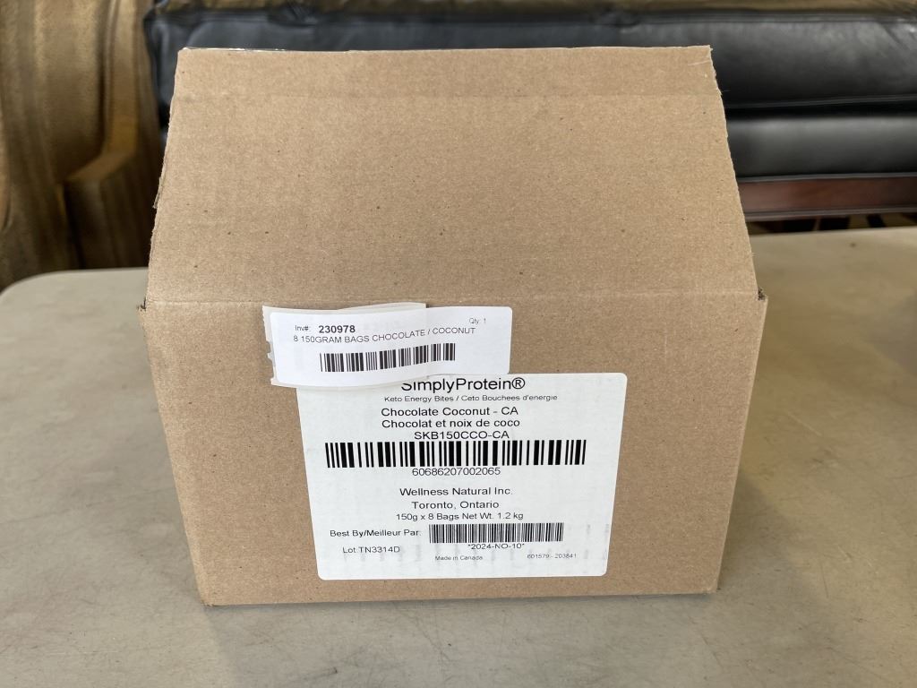 8 150GRAM BAGS CHOCOLATE / COCONUT SIMPLY PROTEIN