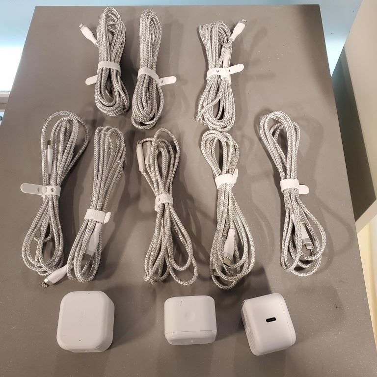 8 AS NEW APPLE IPHONE CORDS AND 3 FAST CHARGE WALL PLUGS