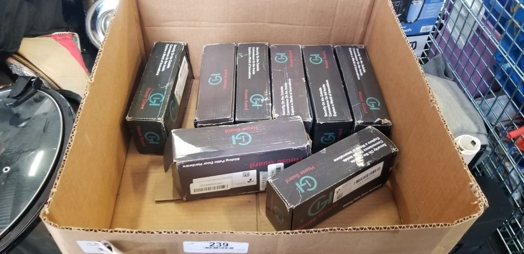 8 ASSORTED NEW PATIO SLIDING DOOR HANDLE HARDWARE KITS, ASSORTED MODELS AND COLORS