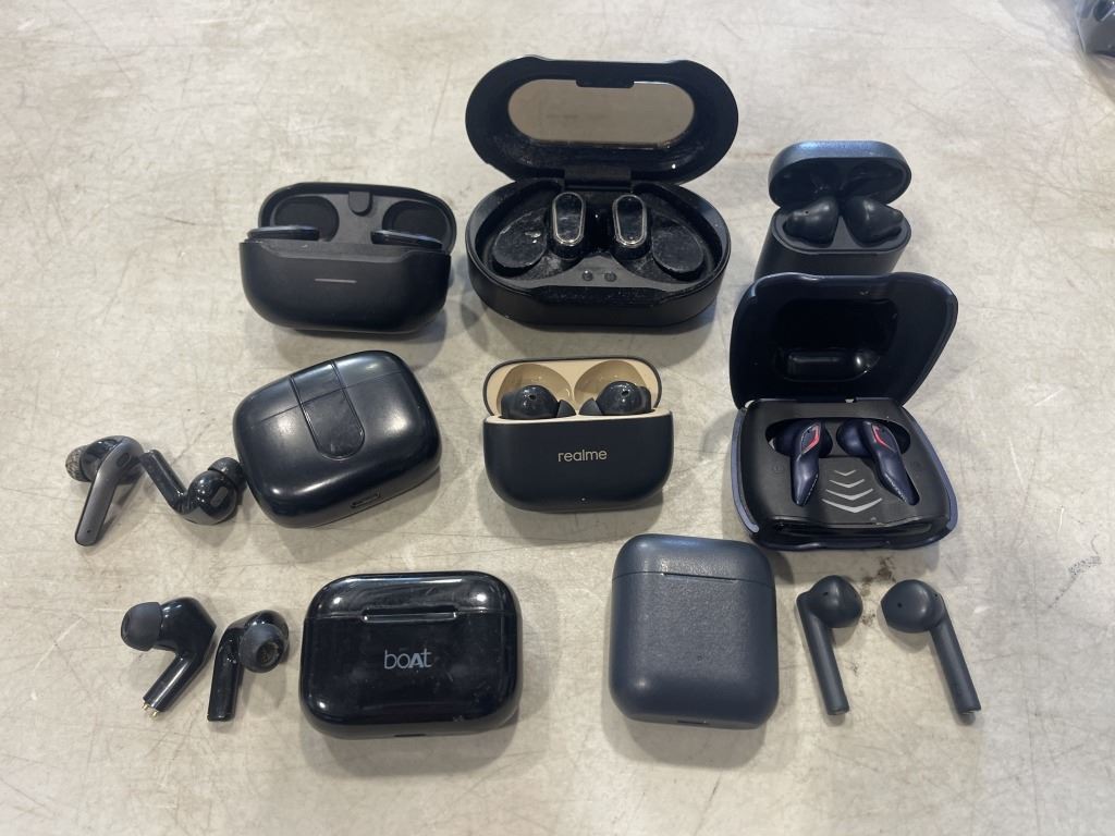 8 ASSORTED PAIRS OF BLUETOOTH EARBUDS,