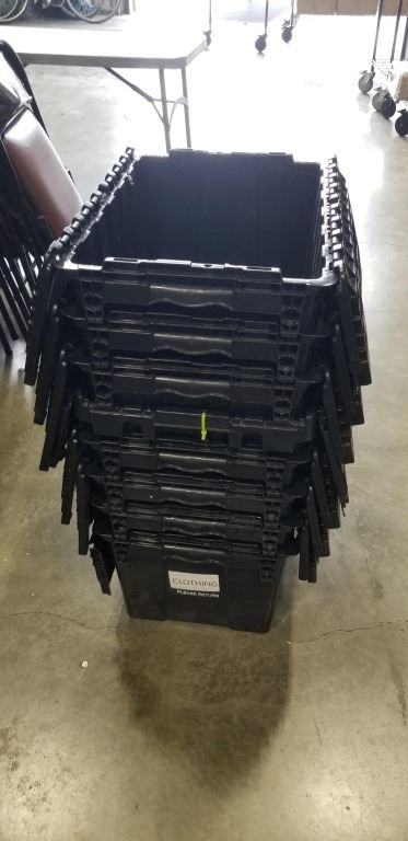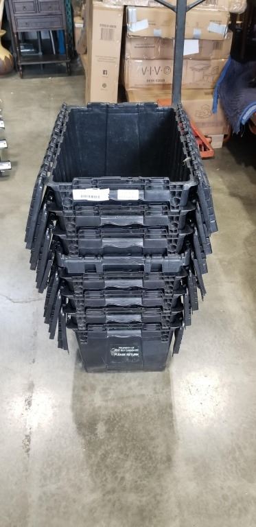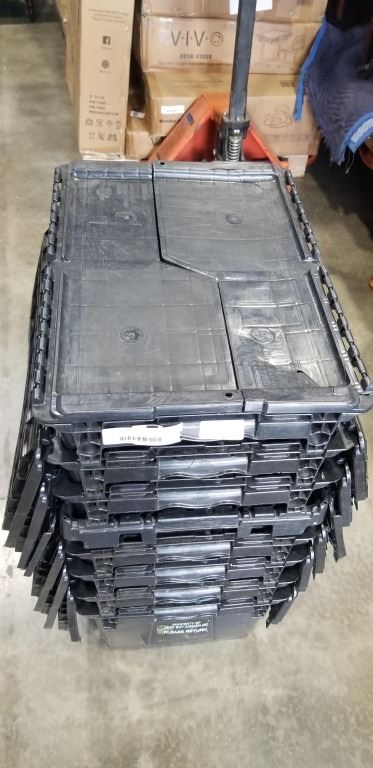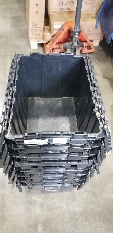 8 BLACK STORAGE BINS W/ BUILT IN LIDS