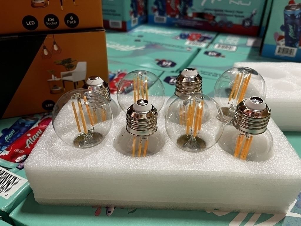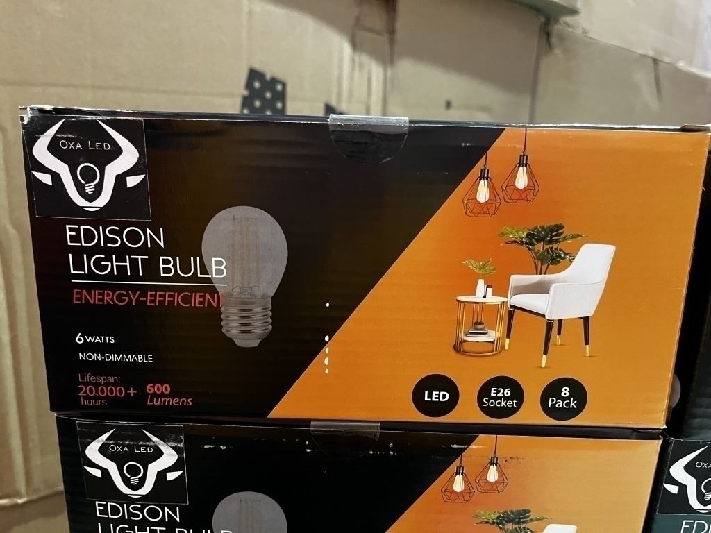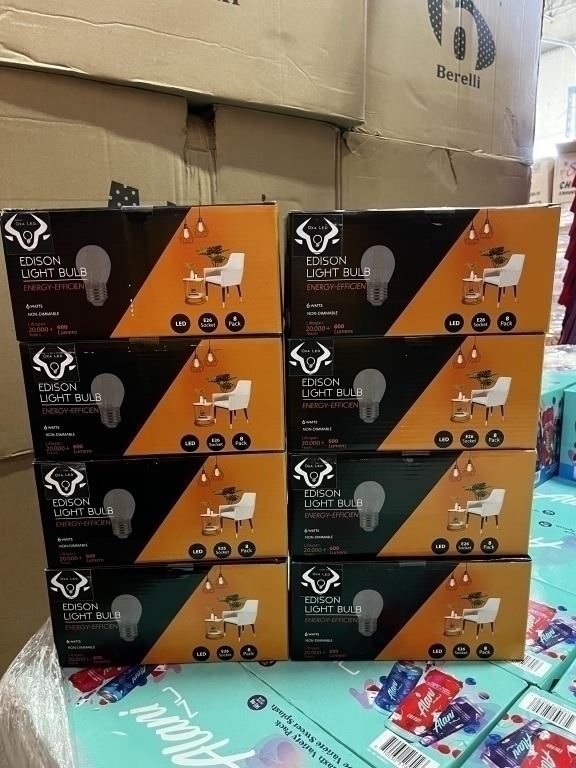 8 BOXES OF NEW BERELLI G50-6W, E26 SOCKET COMPLATIBLE, 8 PER BOX, NON DIMMABLE LIGHT BULBS