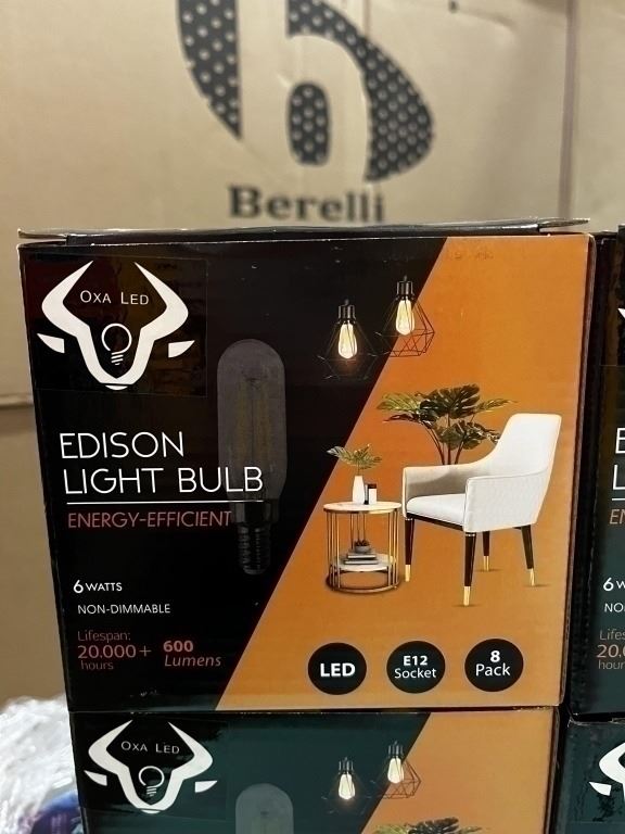 8 BOXES OF NEW BERELLI T6-6W, E12 SOCKET COMPATIBLE, 8 PER BOX, NON DIMMABLE LIGHT BULBS