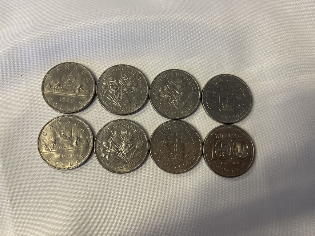 8 COMMEMORATIVE CANADIAN DOLLAR COINS 1969- 1971