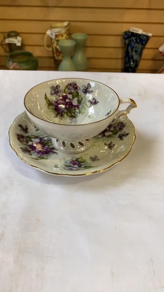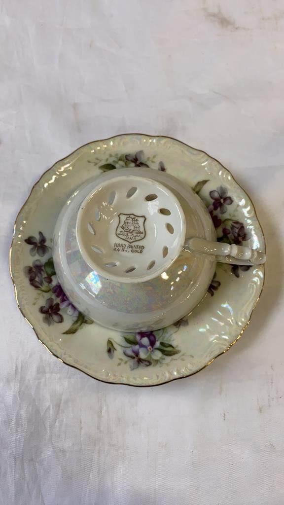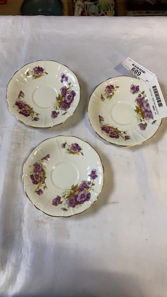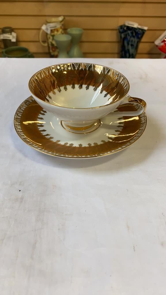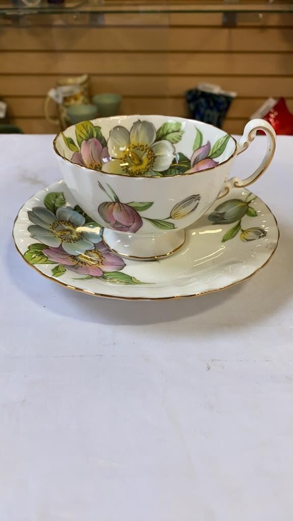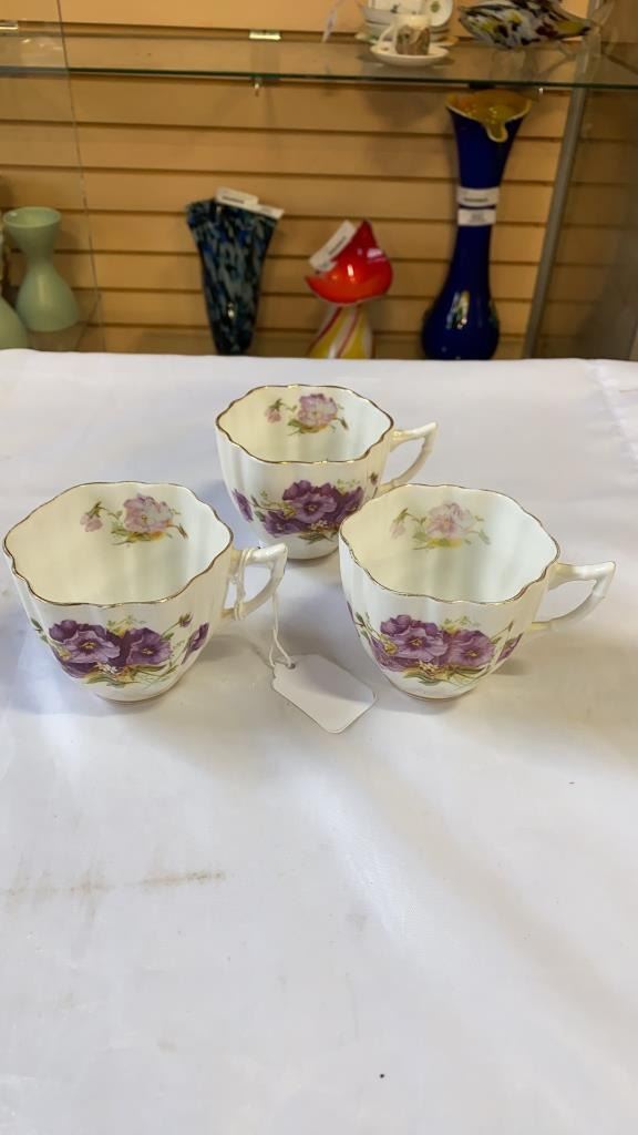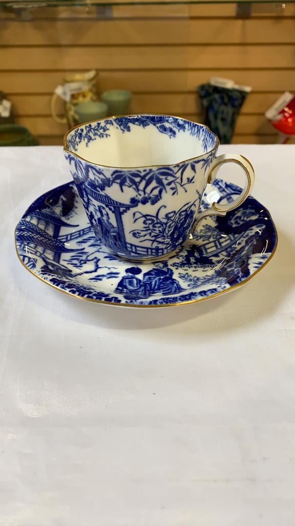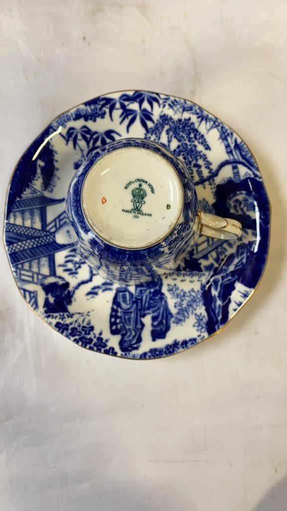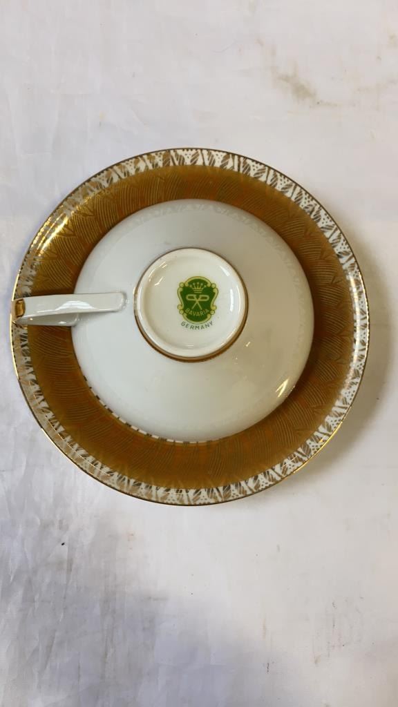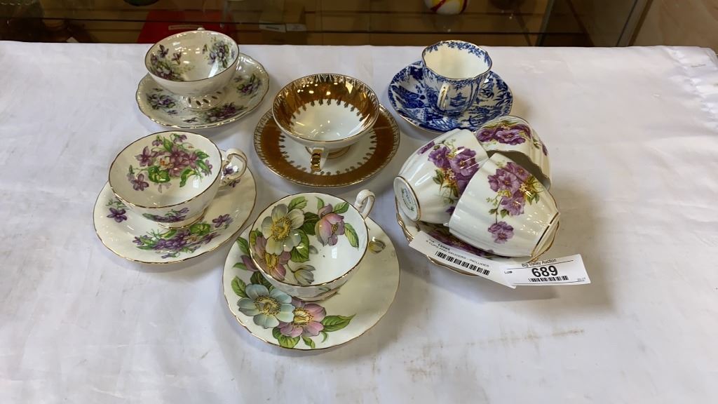 8 CUPS AND SAUCERS - INCLUDES AYNSLEY, CROWN DERBY AND BAVARIA