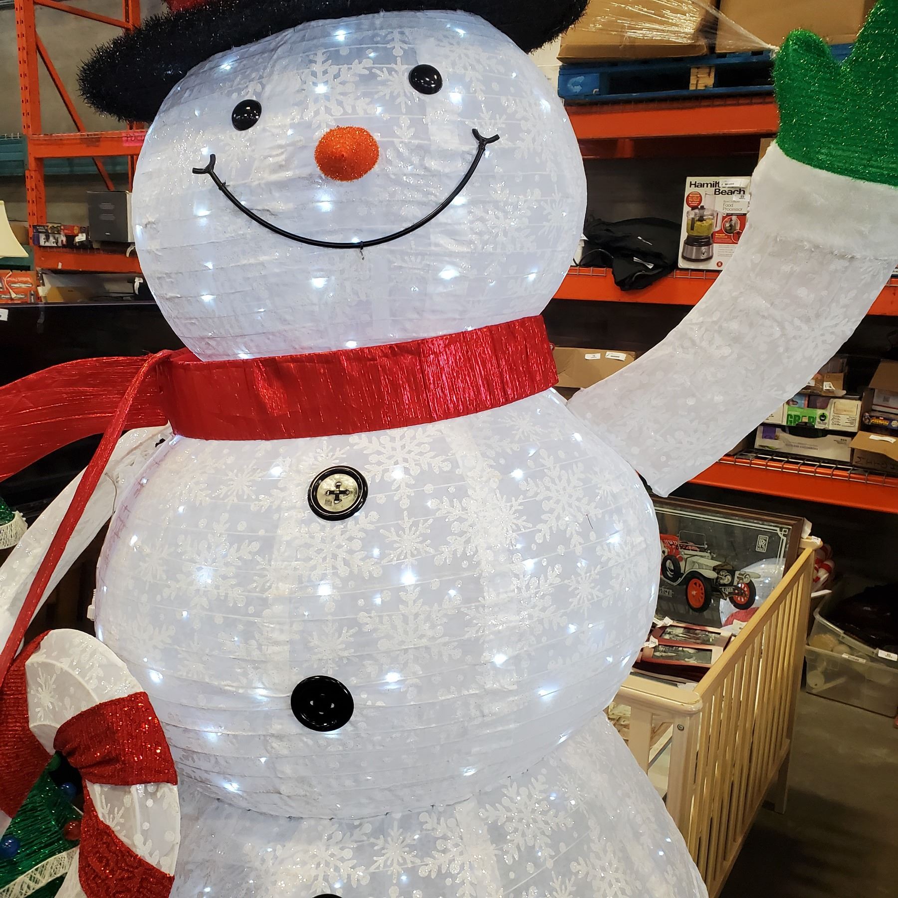 8 FT PRELIT SNOW MAN LAWN FIGURE ON STAND