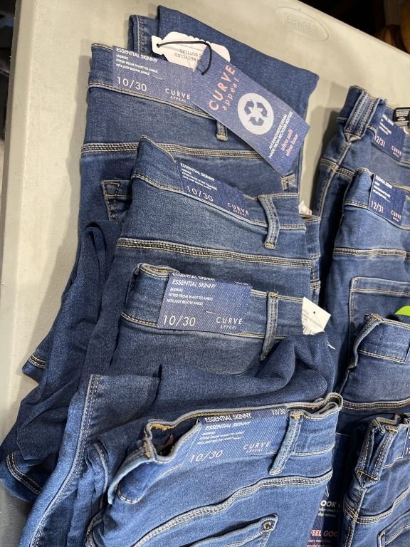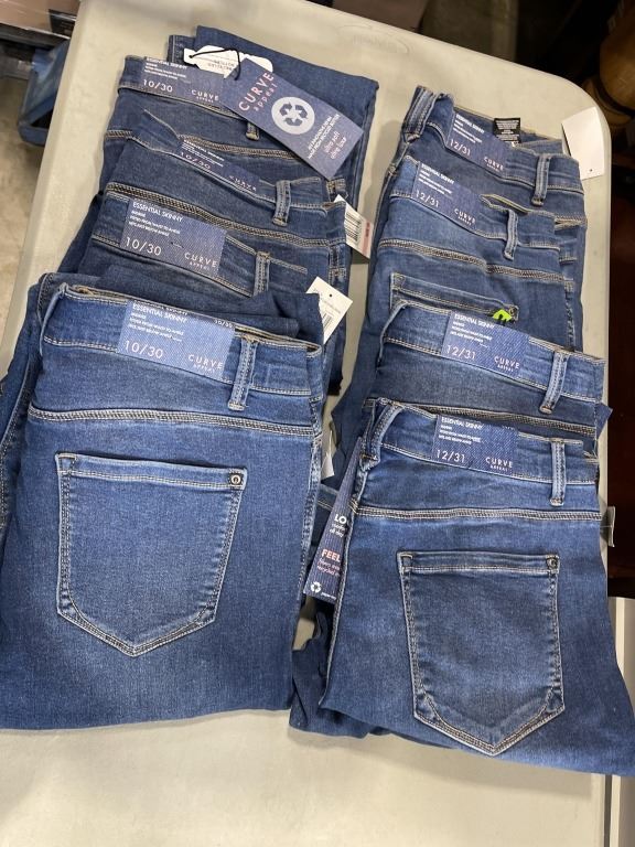 8 NEW PAIRS ESSENTIAL SKINNY JEANS. 4 SIZES 12/31, 4 SIZES 10/30