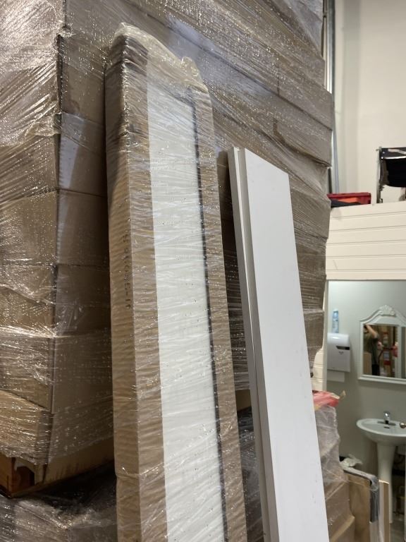 8 NEW WHITE MELAMINE SHELVES, 9 INCH X 84 INCH