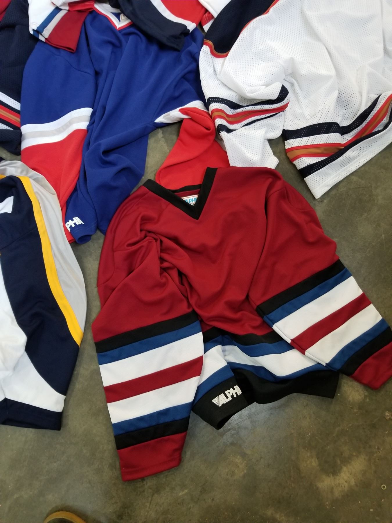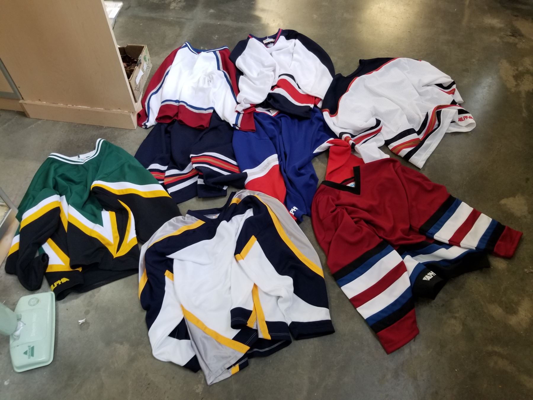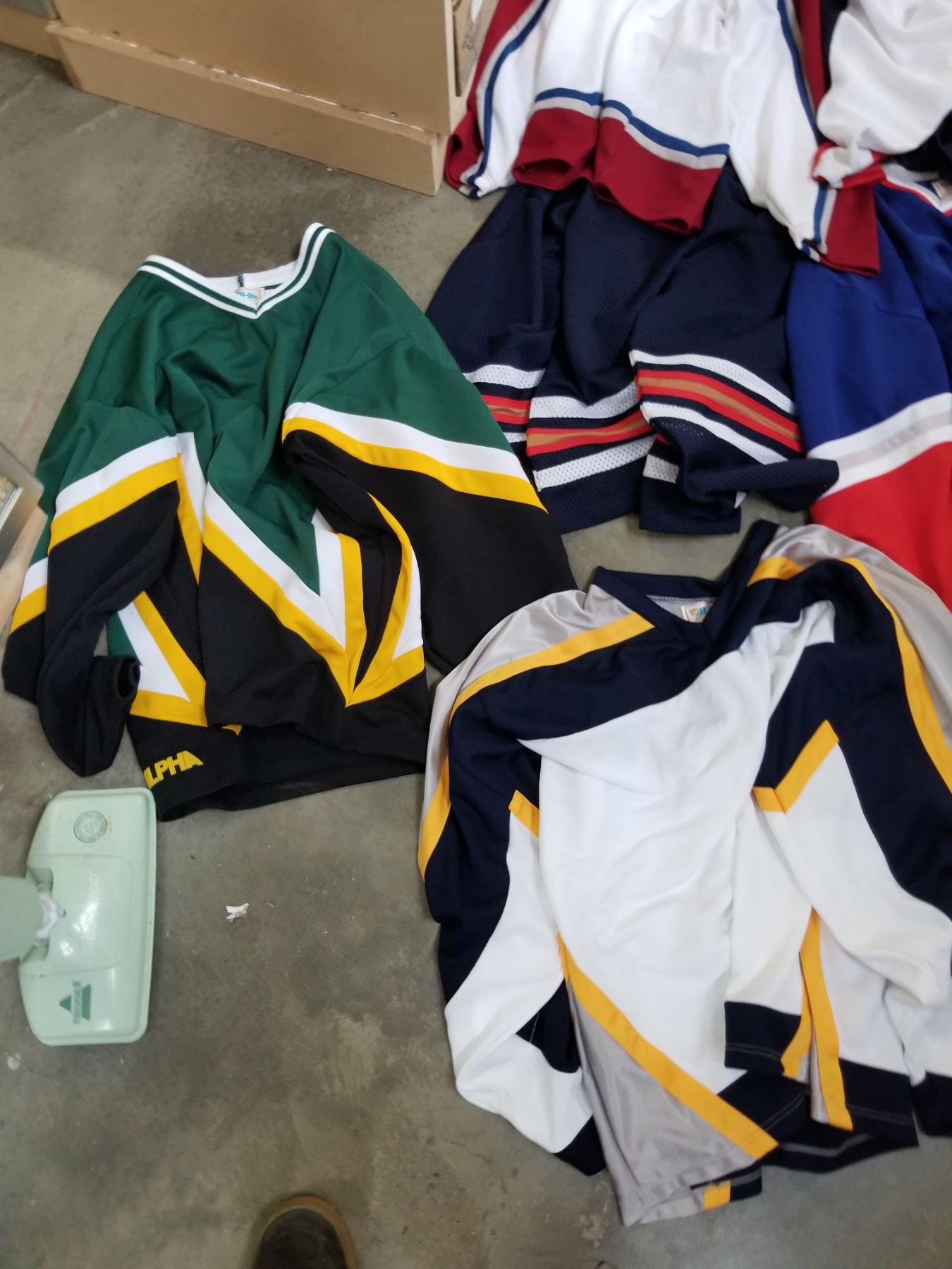 8 NHL TEAM COLOR PRACTICE JERSEYS RETAIL $49.99 EACH, 2 OILERS, 2 AVALANCHE, DALLAS, COLUMBUS, NASHV