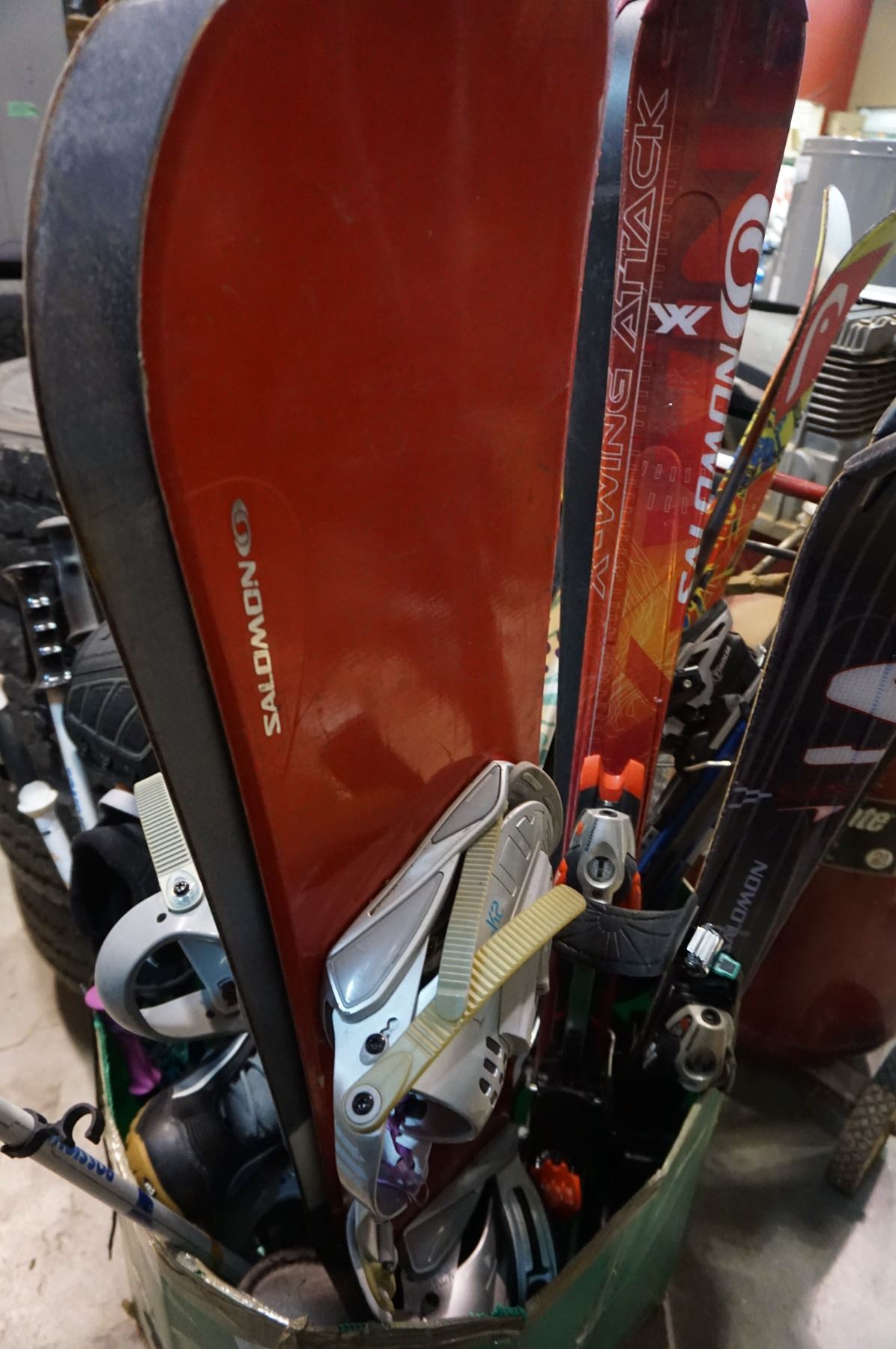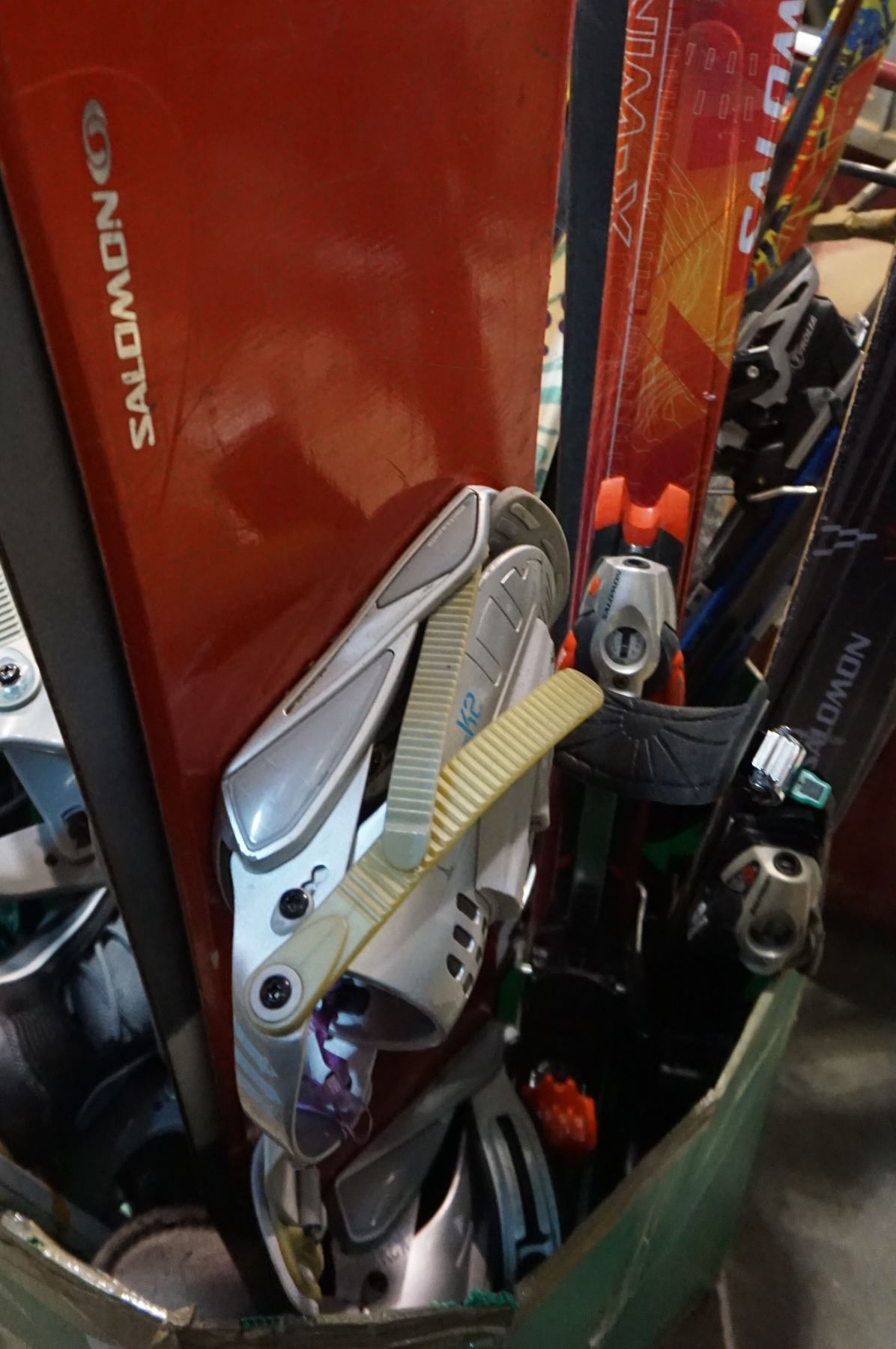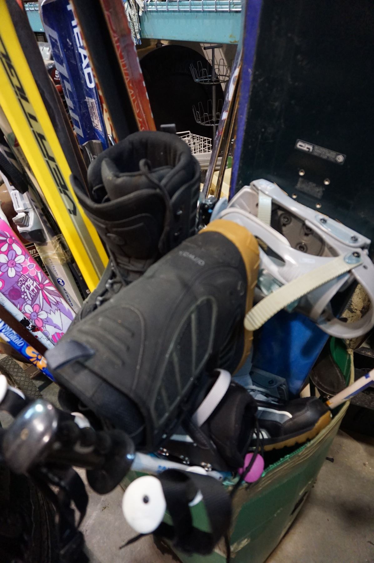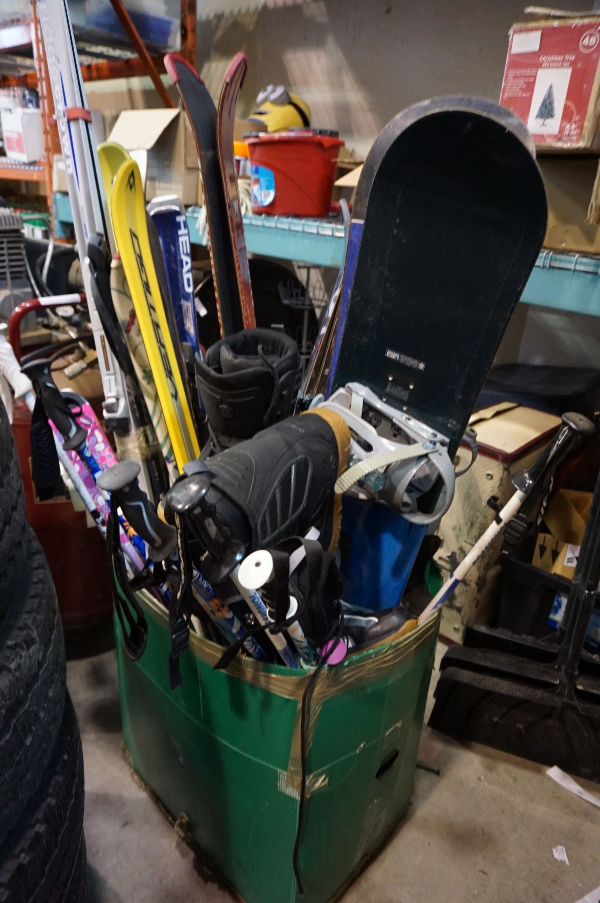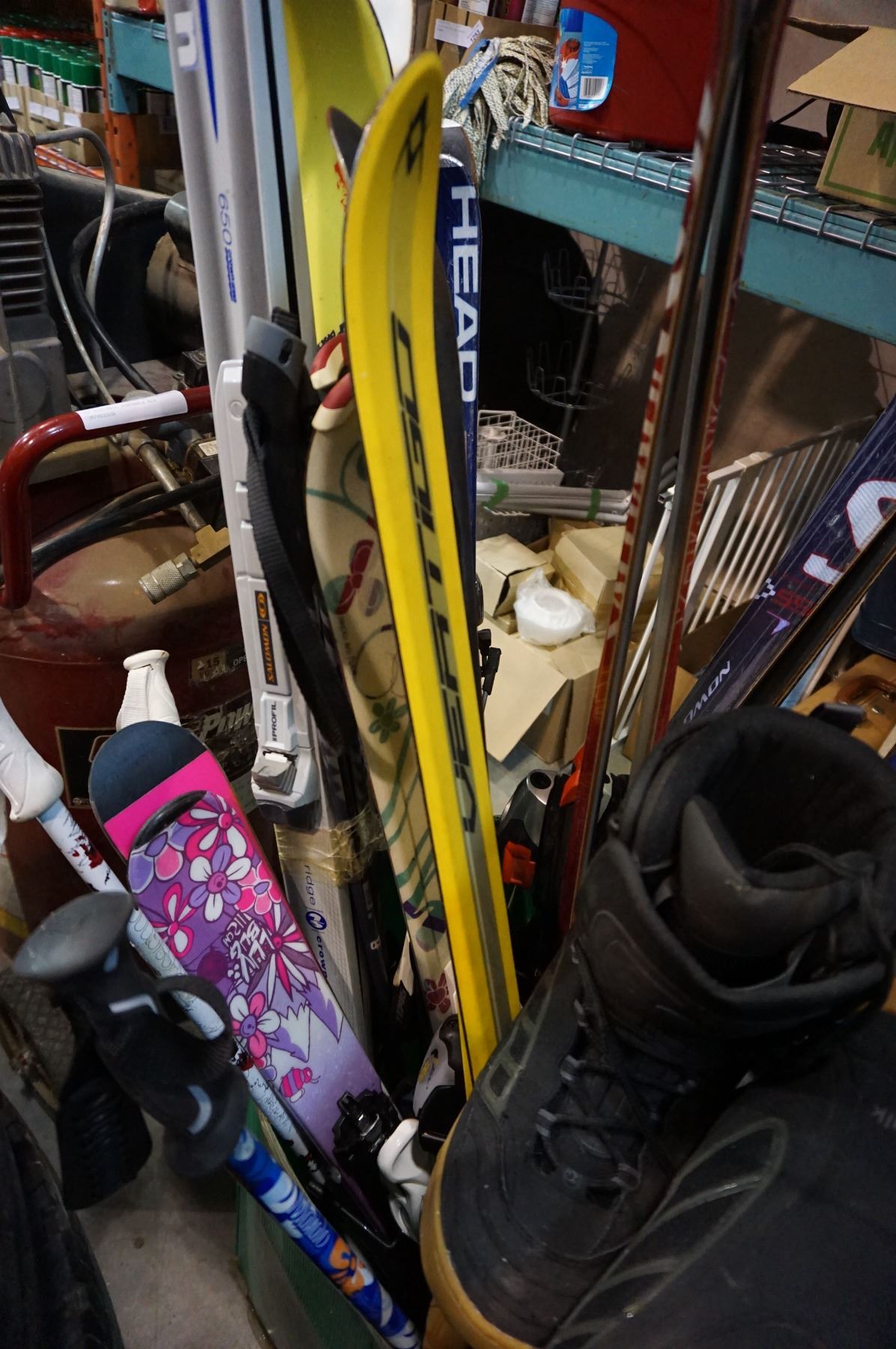 8 PAIRS OF SKIS, 2 SNOWBOARDS, AND 2 PAIRS OF SNOWBOARD BOOTS