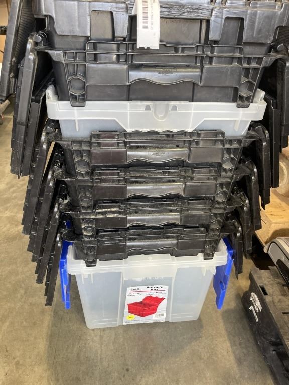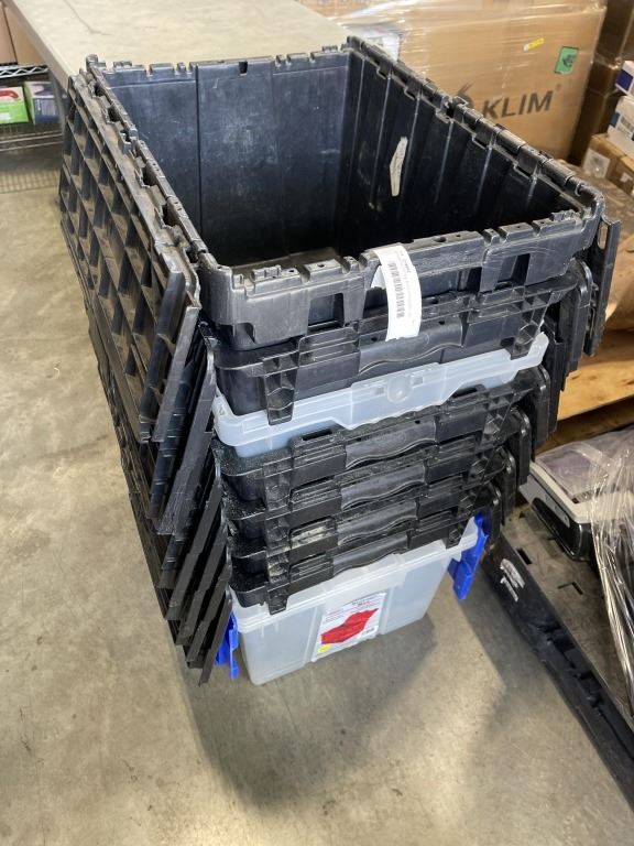 8 PLASTIC TOTES WITH ATTACHED LID