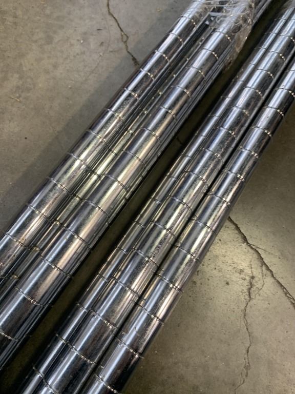 8 POLES FOR CHROME RACKS, APPROX. 5' LONG