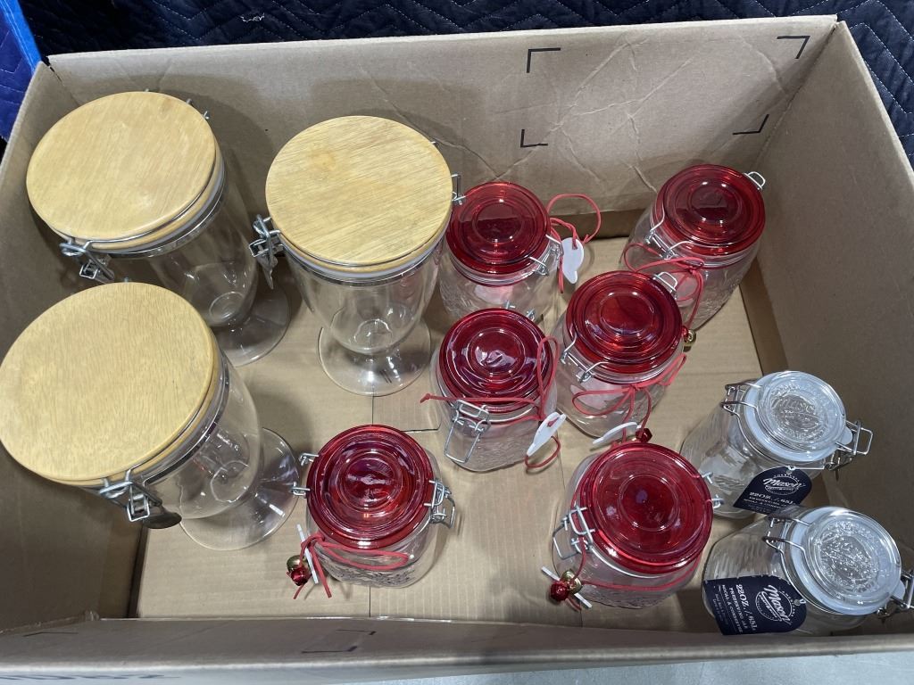 8 PRESERVING JARS INCLUDING 2 MASON WITH 3 STORAGE CANNISTERS