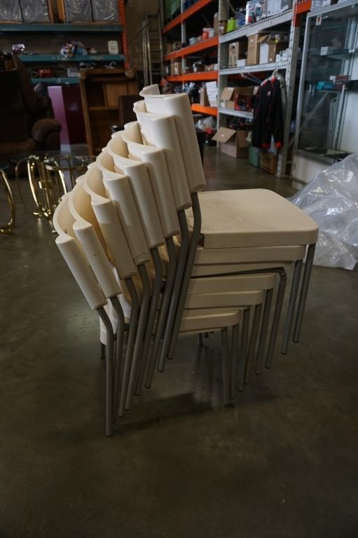 8 WHITE STACKING CHAIRS
