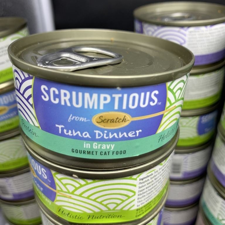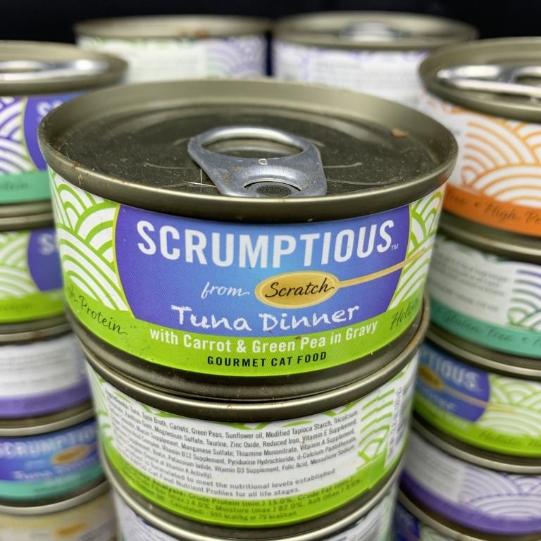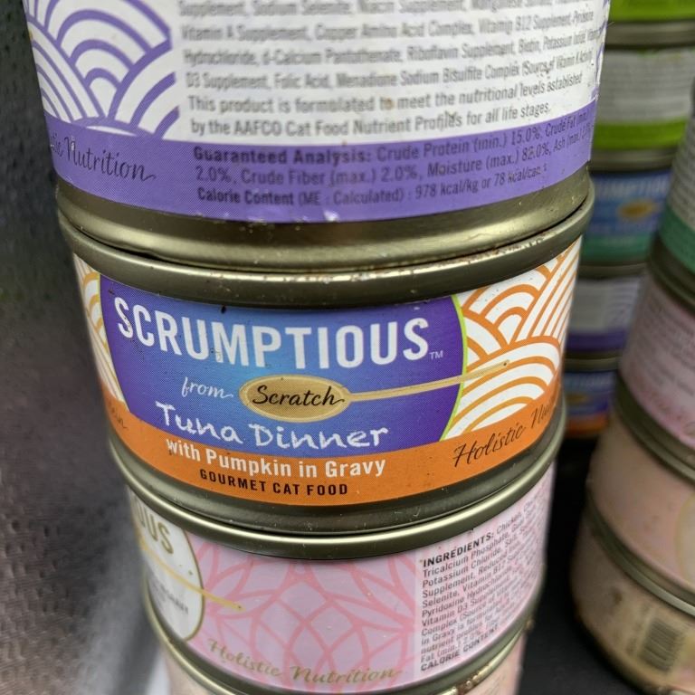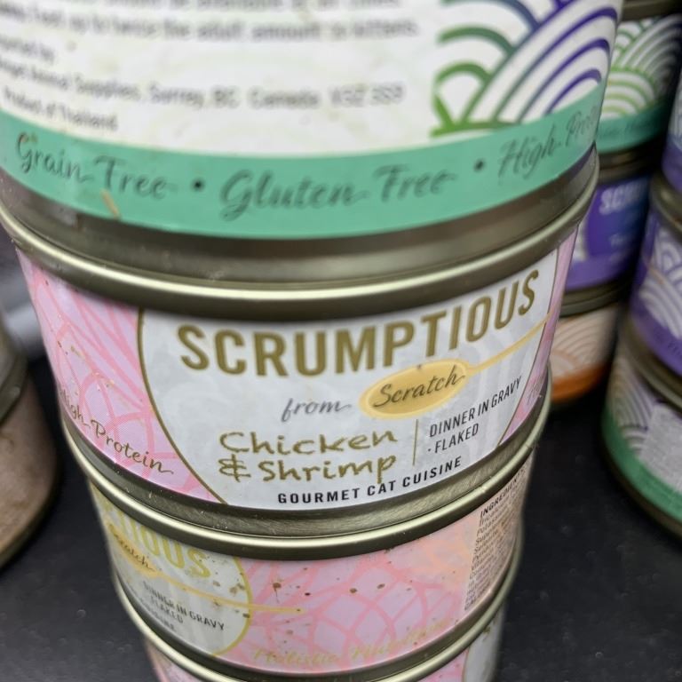 83 CANS OF SEALED SCRUMPTIOUS GOURMET WET CAT FOOD ASSORTED FLAVORS