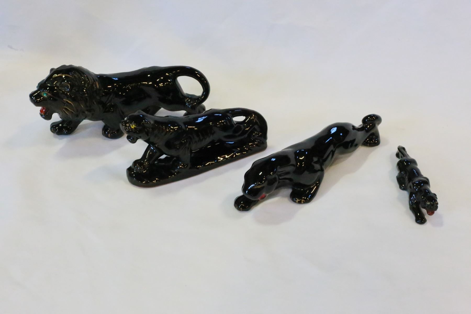 9" BLACK LION AND THREE BLACK PANTHERS MADE IN JAPAN