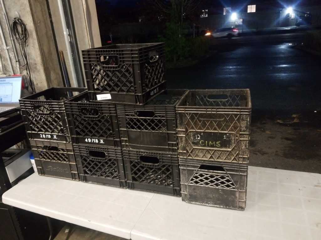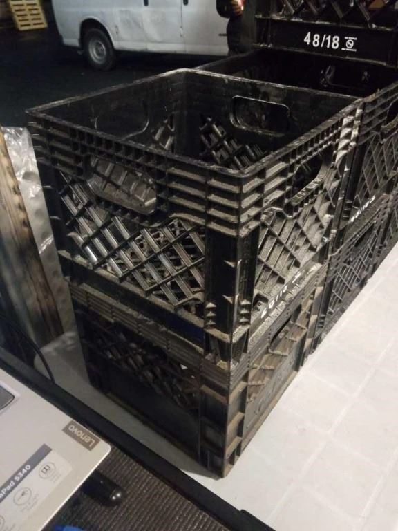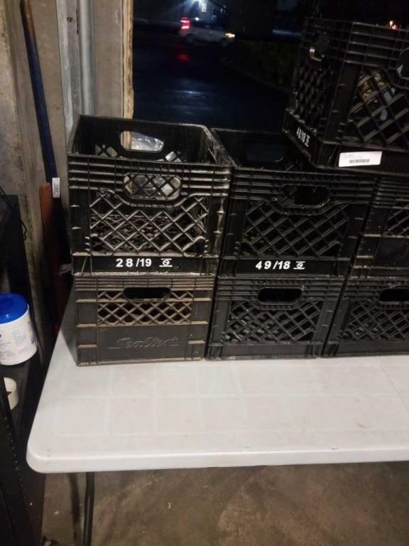 9 BLACK PLASTIC CRATES
