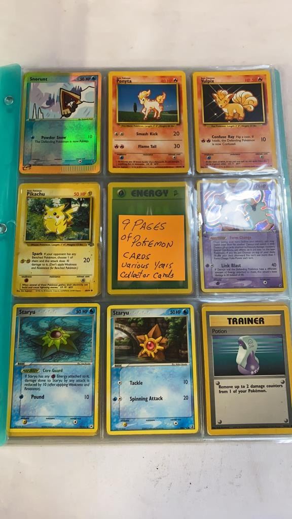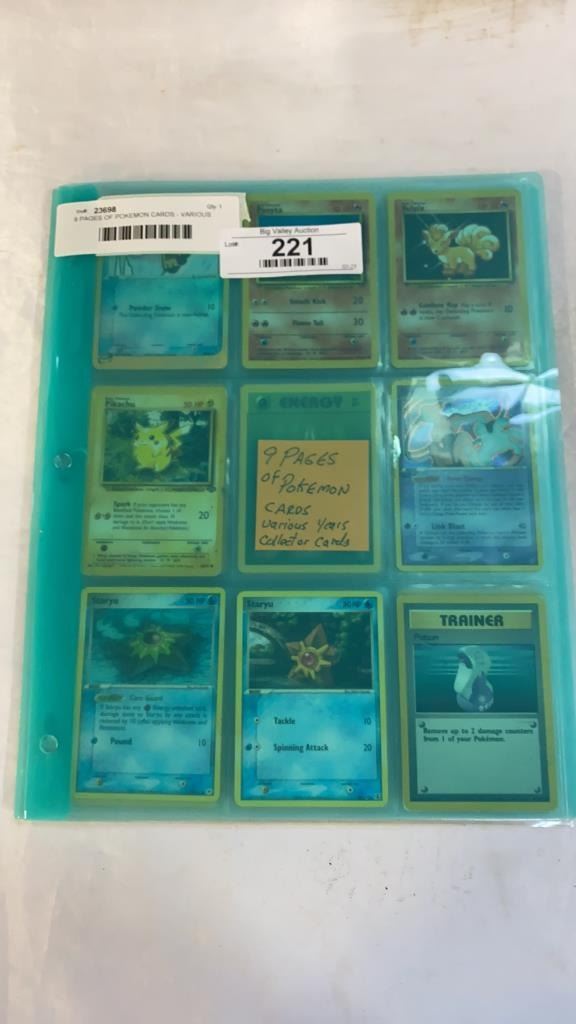9 PAGES OF POKEMON CARDS - VARIOUS YEARS