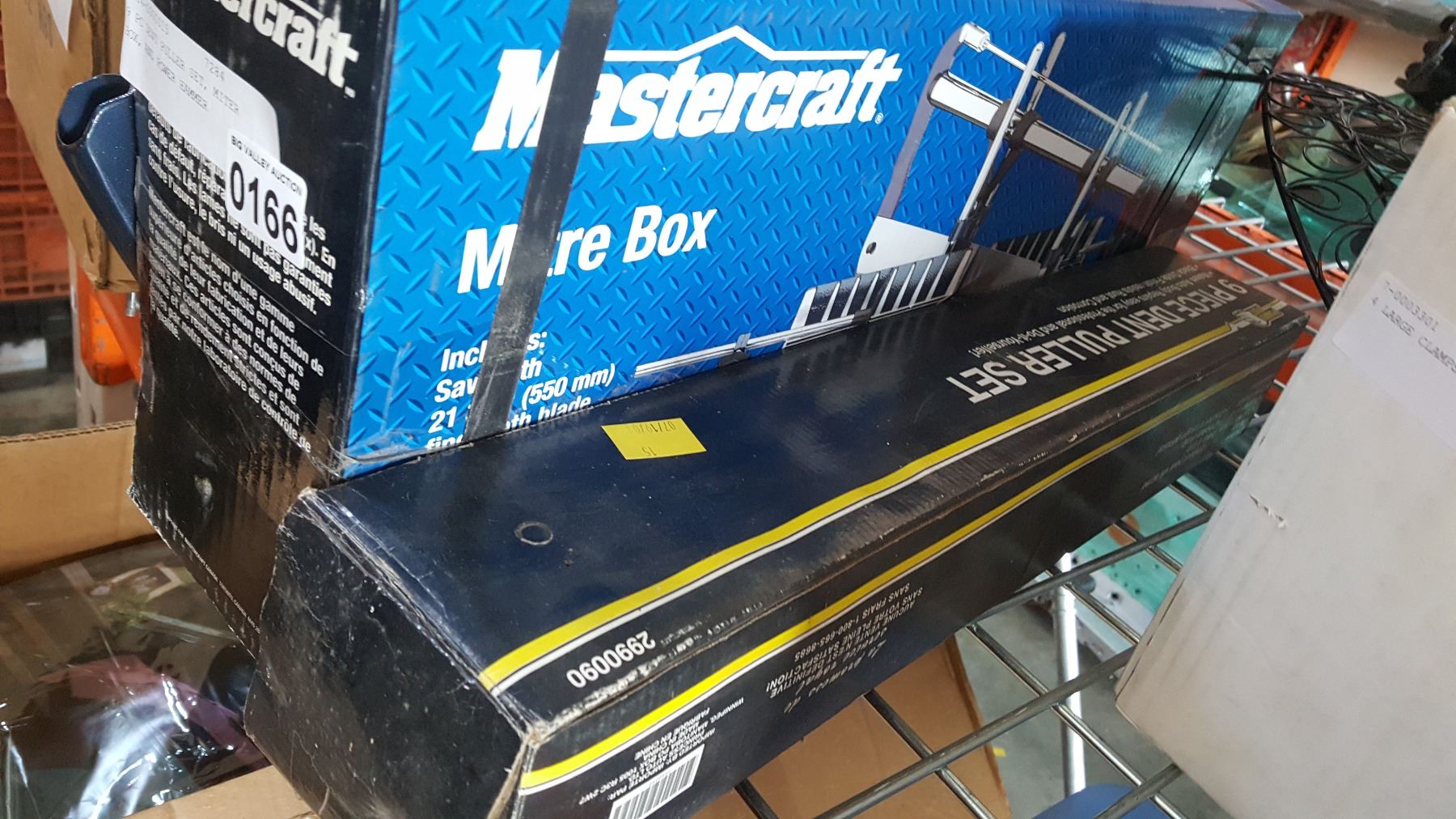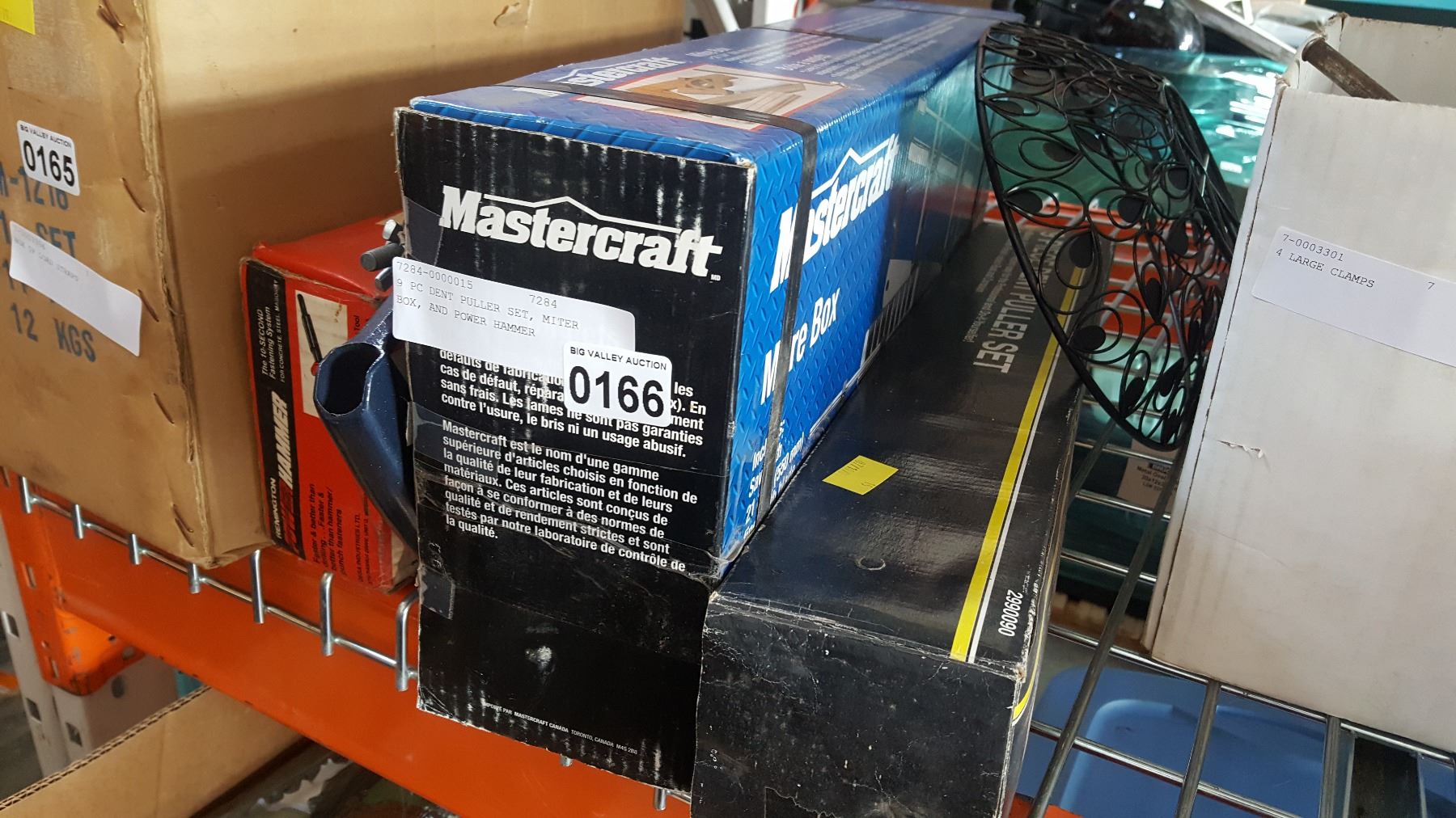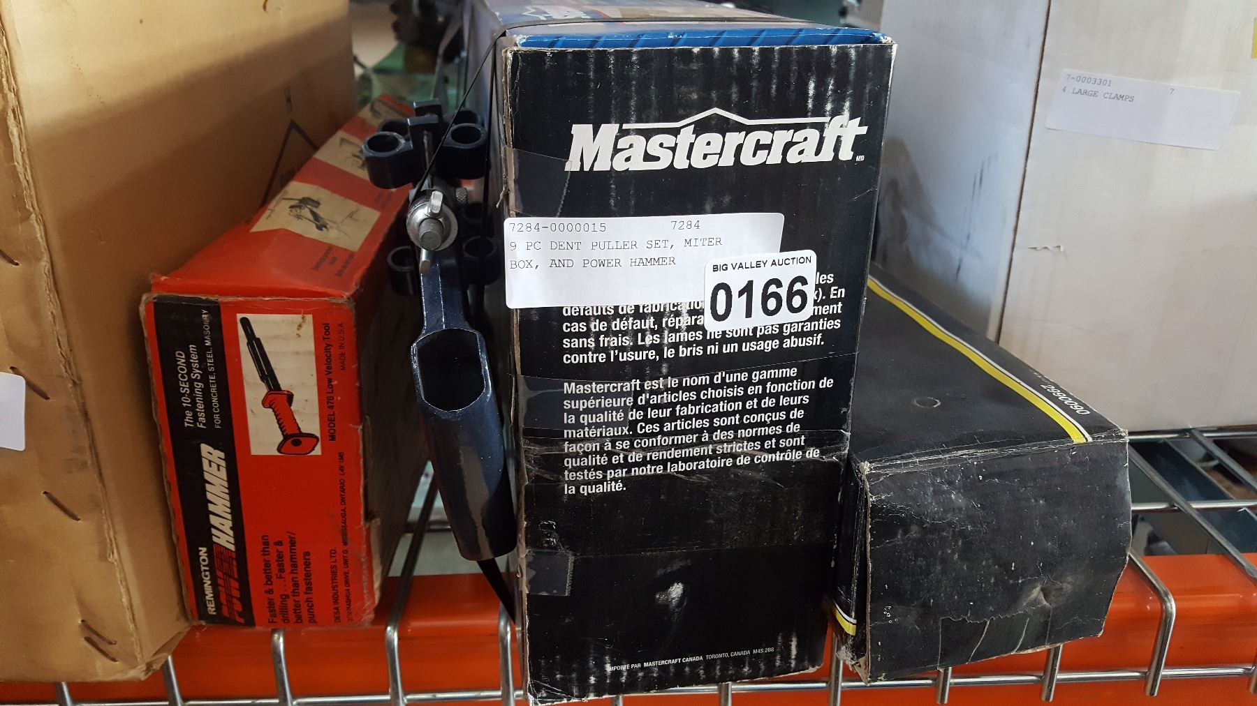 9 PC DENT PULLER SET, MITER BOX, AND POWER HAMMER