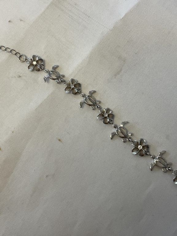 925 STERLING SILVER TURTLE AND FLOWERS BRACELET
