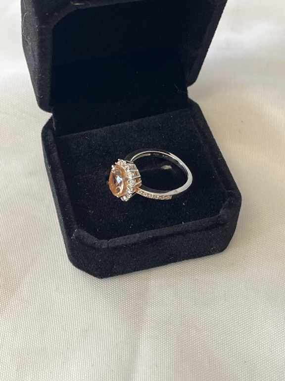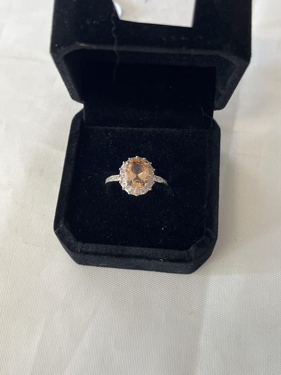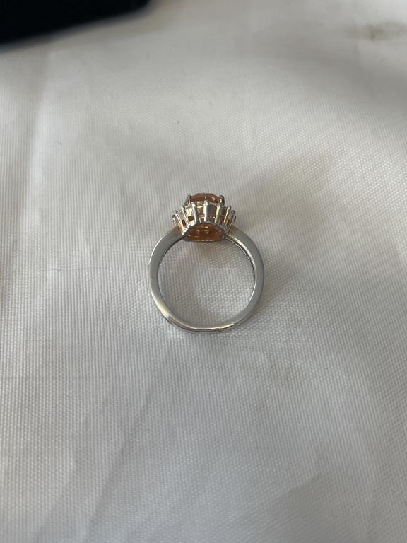 925 STERLING SILVER W/ TOPAZ QUARTZ STONE W/ TINY STONES AROUND AND PART OF SHANK