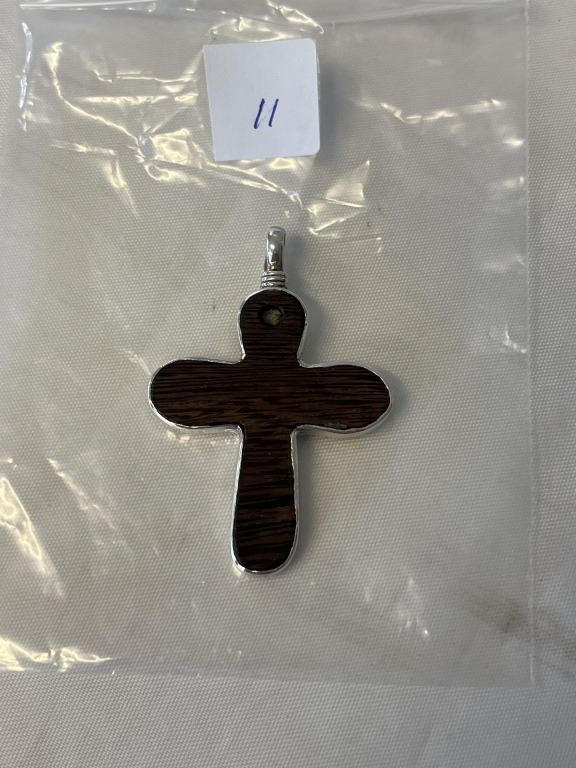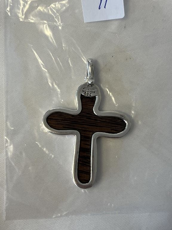 925 STERLING SILVER/ WOOD CROSS HANGER PENDANT MARKED QUE MILAGRO 925