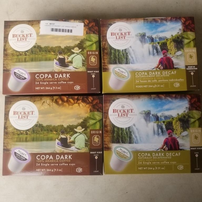 96 PODS BIG 5 BUCKET LIST SINGLE SERVE COFFEE CUPS - 48 COPA DARK AND 48 COPA DECAF